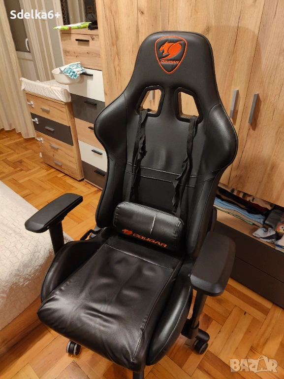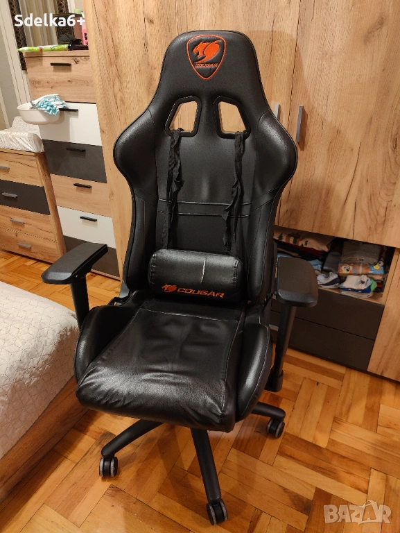 Използван геймърски стол Cougar в черен цвят. Подходящ за игри и работа от дома. Стилен и удобен дизайн с лого на Cougar.