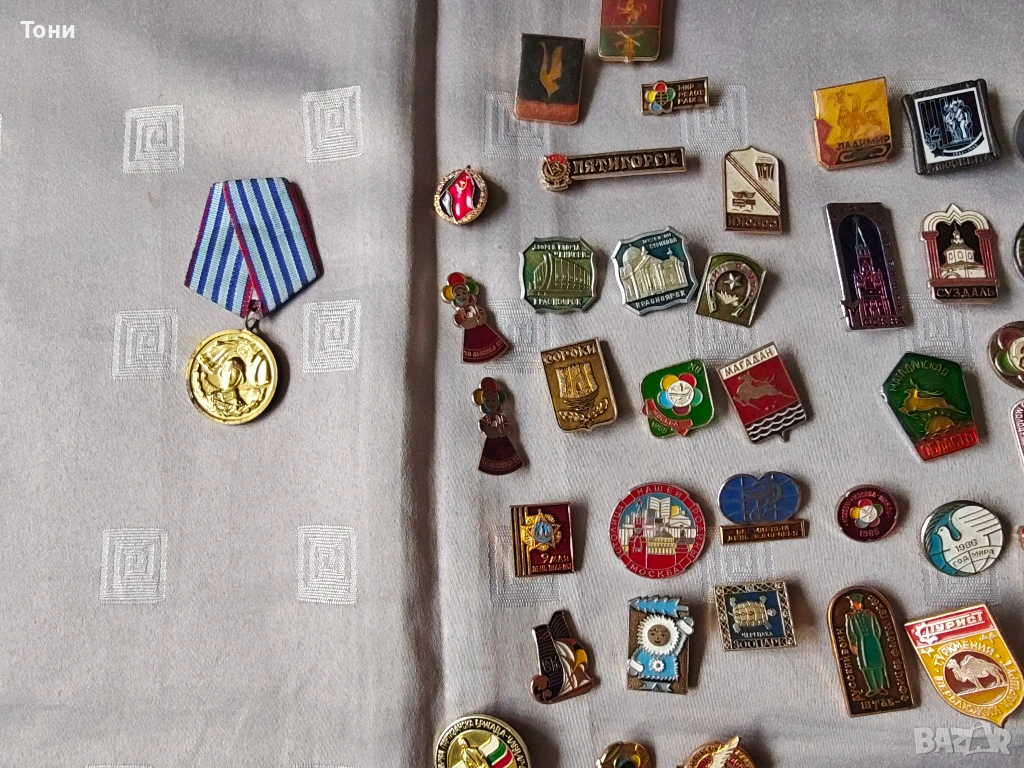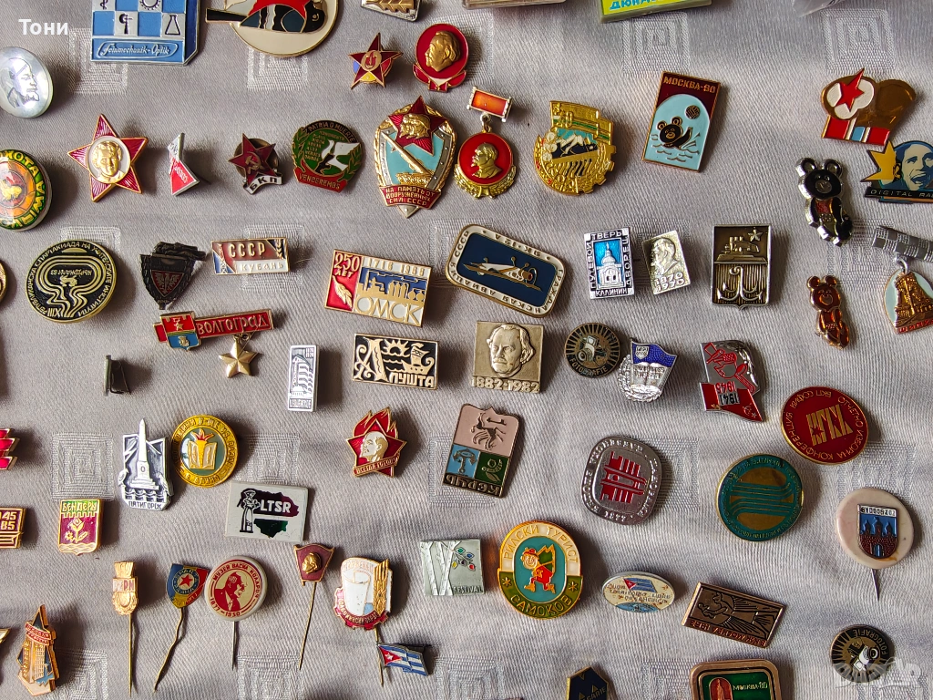 - Градска хералдика: Значки с гербове на градове като Омск (250 г.), Волгоград, Киев, Пятигорск, Алуща, както и българските Самоков, Казанлък и Ямбол.