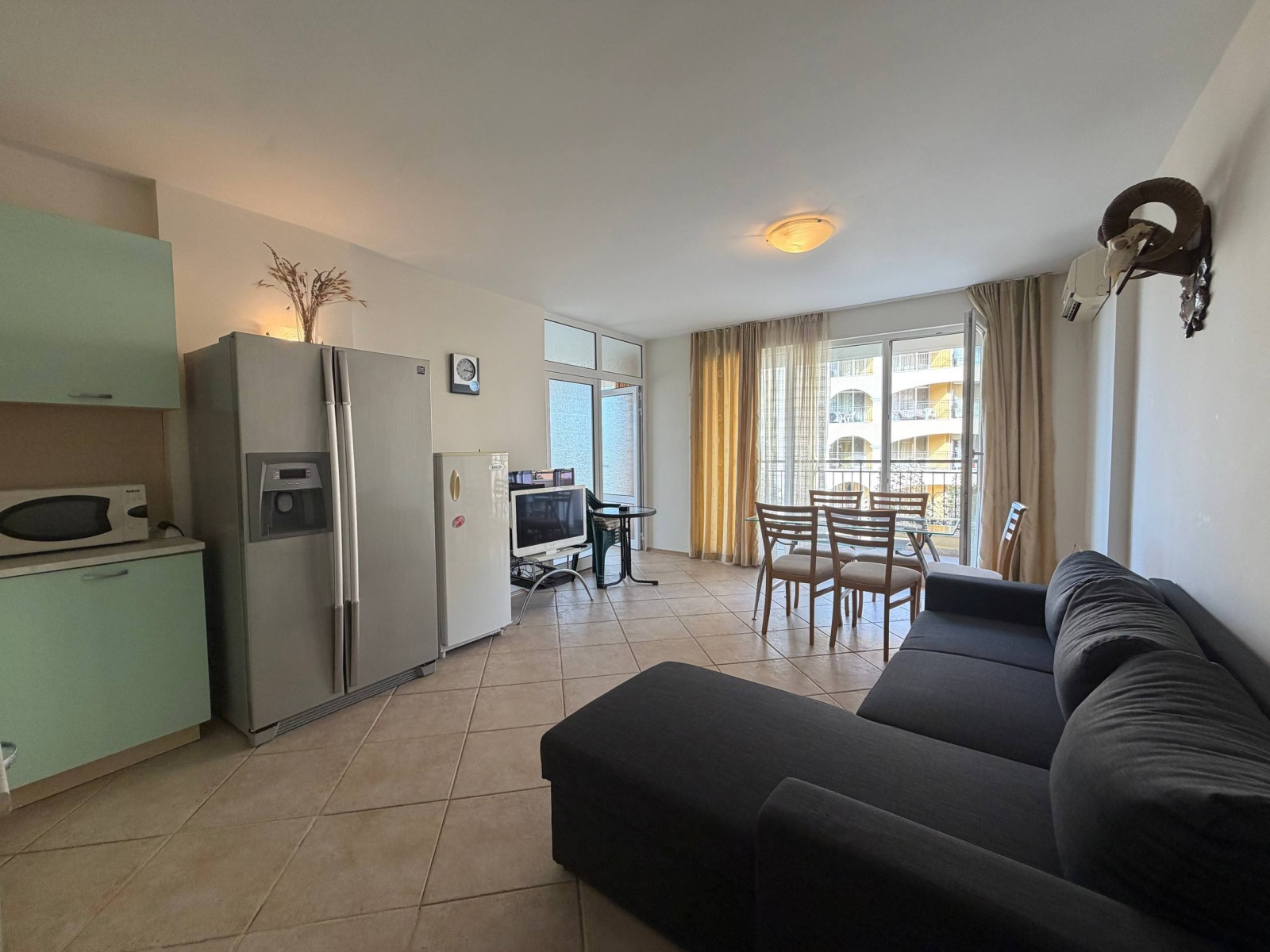 Предлагаме за продажба обзаведен тристаен на първа линия в Ахелой, в затворен комплекс. Апартаментът се намира на трети жилищен етаж в сграда с асансьор и е с квадратура 92 кв.м. Разпределение на апартамента: просторна дневна с кухненски бокс, кът за хранене и зона за отдих, 2 спални, баня с душ кабина и тоалетна, просторна тераса. Апартаментът е напълно обзаведен и оборудван. Комплексът разполага с външни басейни, фитнес зала, спа център, детска площадка, билярд, ресторанти, магазини, пералня, салон за красота. Midia Grand Resort е комплекс с ваканционни апартаменти, разположен в близост до град Ахелой. Комплексът е с много добра локация, на метри от плажа, автобусна спирка, разнообразни магазини и заведения за хранене и развлечения. Летище Бургас е само на 15 минути. Акт 16 и Разрешение за ползване. Апартаментът е изключително подходящ за живеене и отдаване под наем целогодишно.