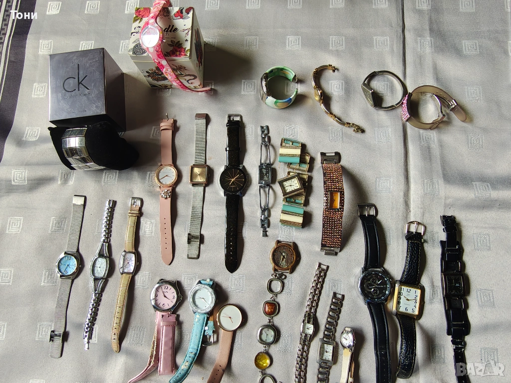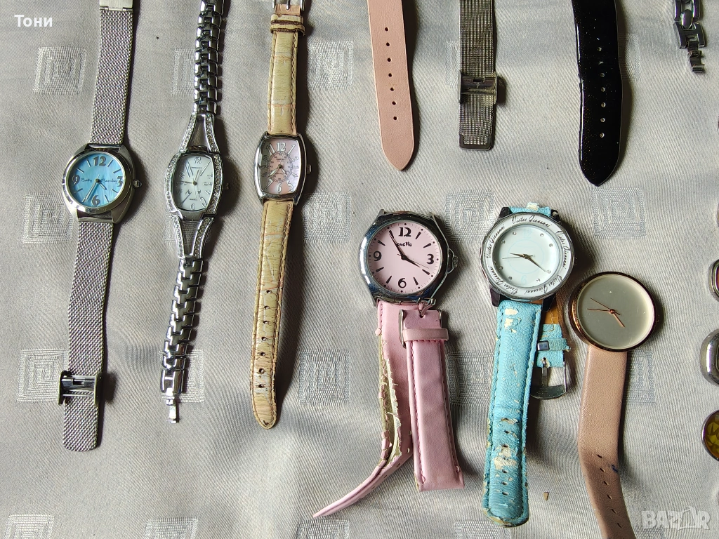 - Casio LTP-1208 (2 броя): Класически модели с издължен корпус. Единият е със стоманена верижка, а другият – със светла кожена каишка и нежно розов циферблат. 51 евро Изключително надеждни.