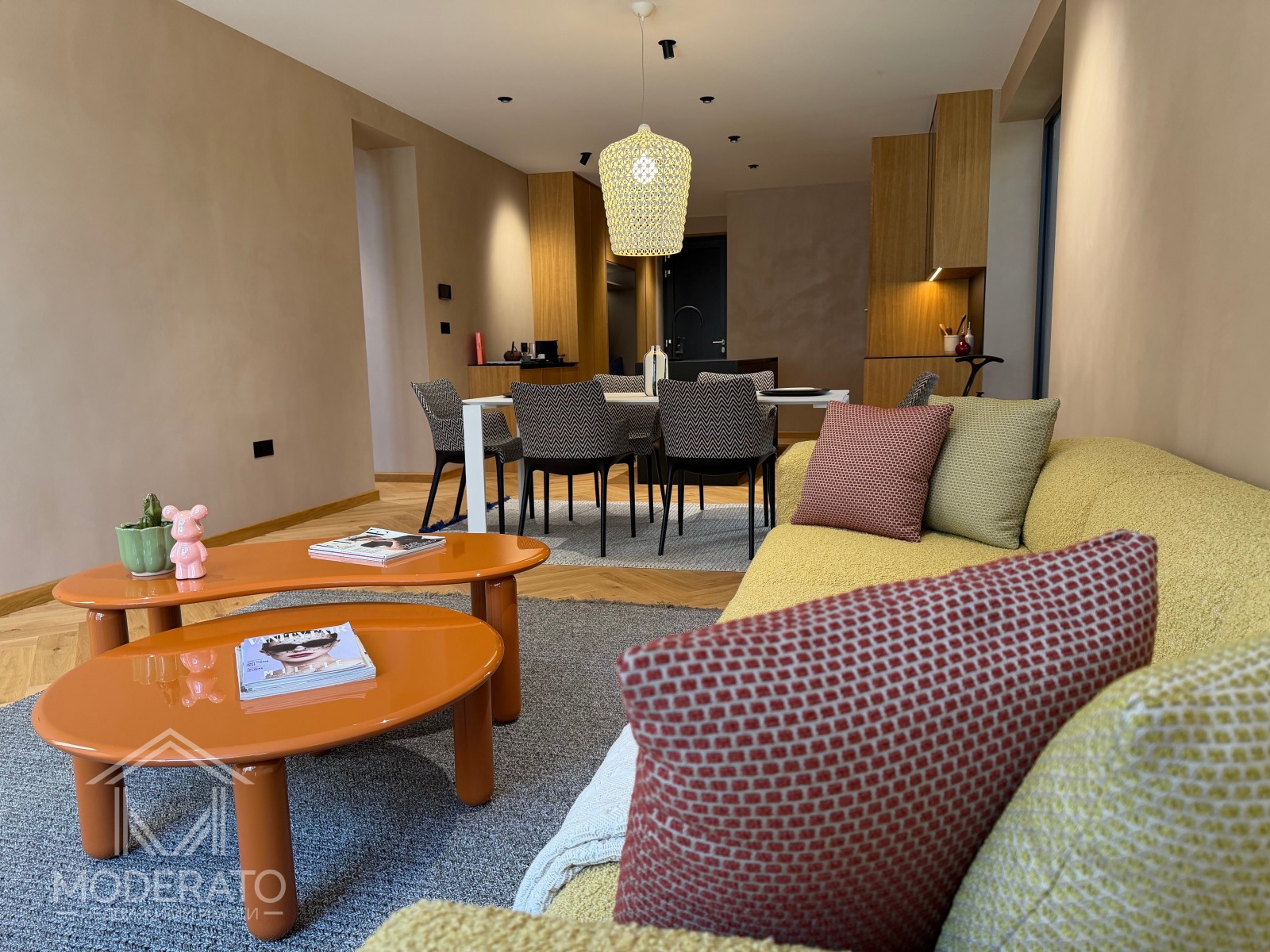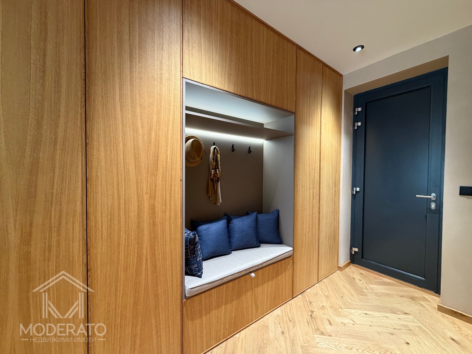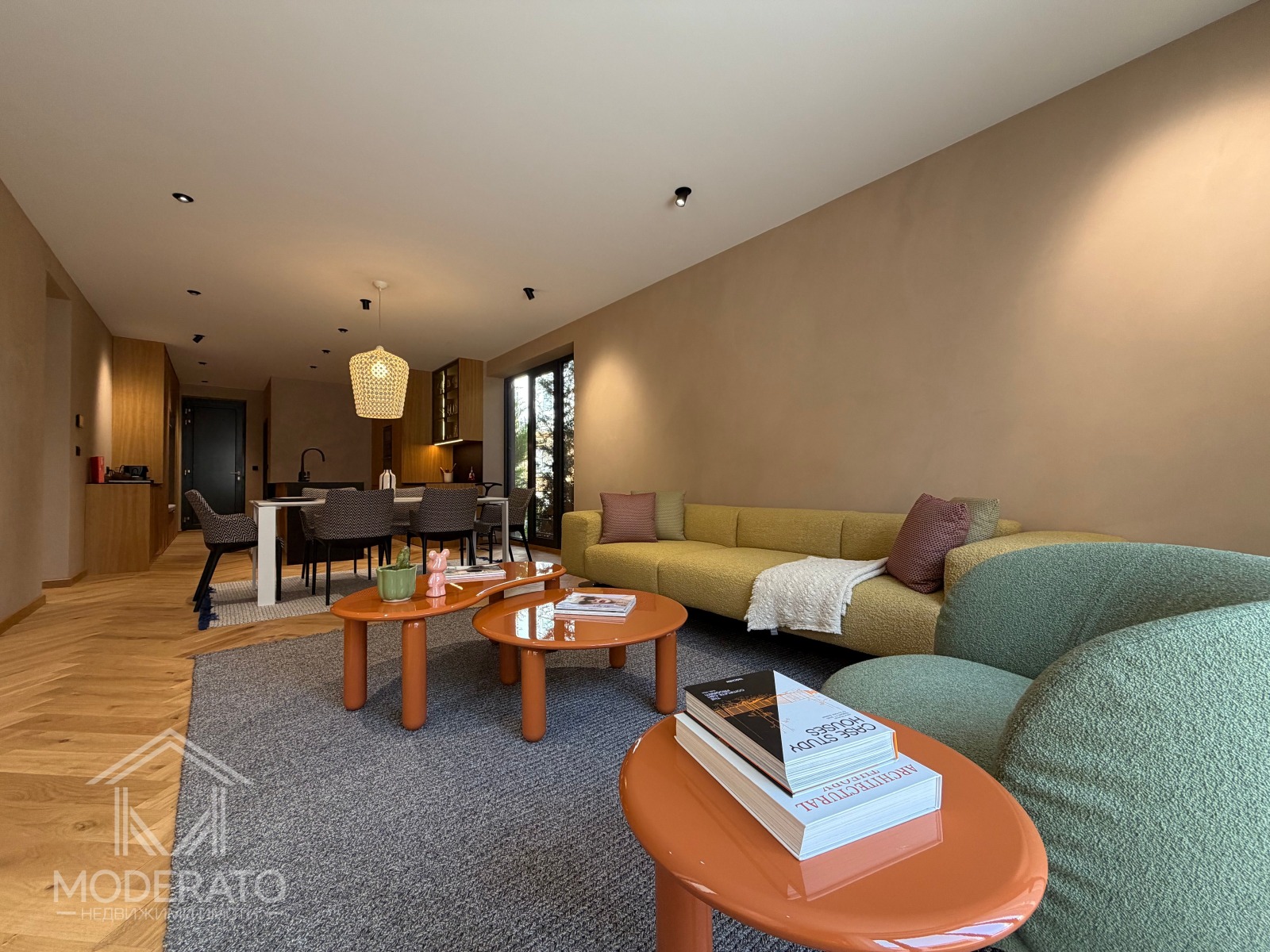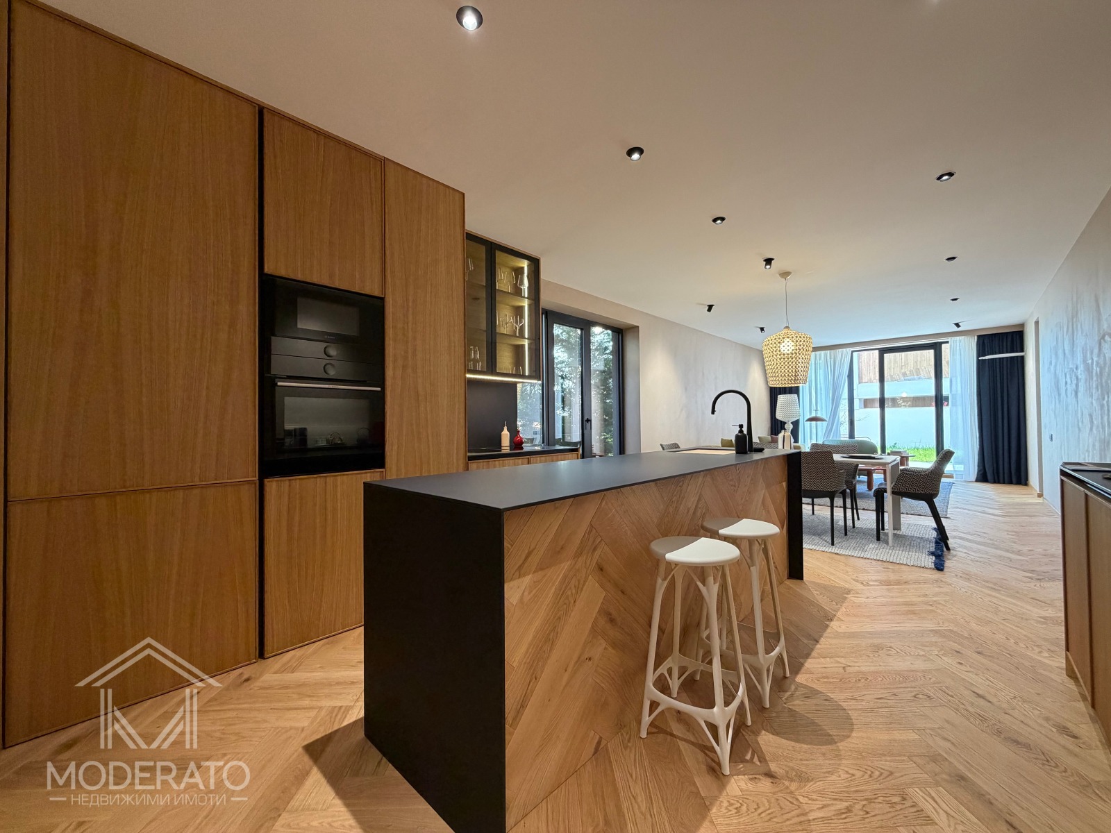 Тази елегантна къща е проектирана със съвременна, модерна архитектура, с фокус върху функционалността и внимание към детайлите - както във външната визия, така и във вътрешното изживяване на жителите. Всекидневната предлага приятна зона за отдих с различни декоративни елементи. Изцяло обзаведена с италиански мебели от фирма Kartell.