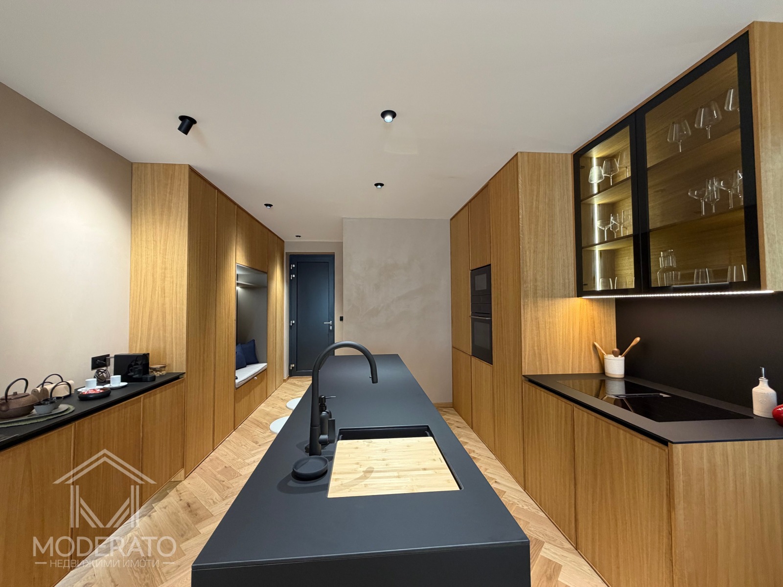 Кухнята е от масивно дърво с плот, напълно оборудвана със най-висок техника BOSCH. Използвана е омекотителна система за вода, пречистваща котления камък, която удължава живота на уредите и е годна за пиене.