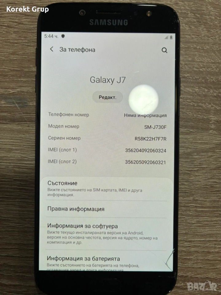 Samsung Galaxy J7 с пукнат екран долу в ляво но като цяло работи.Може да се види на място за гр.Варна или да се изпрати по Еконт с преглед и тест..