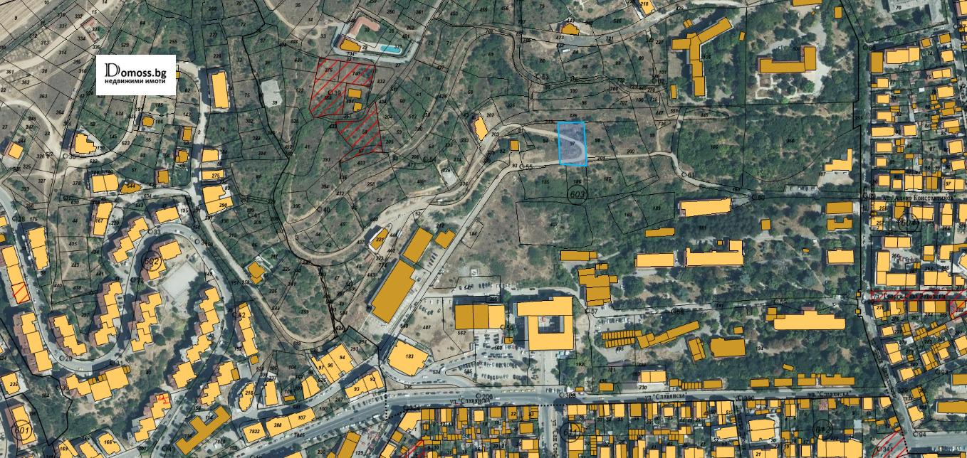 Парцелът е с площ от 1075 кв.м., подходящ е за строителство на многофамилна жилищна сграда, комплекс от къщи, медицински център или смесено строителство.