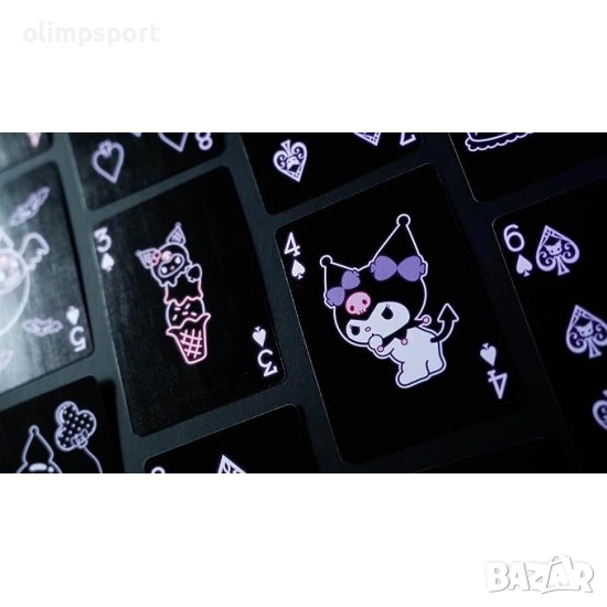 Картите за игра Bicycle Kuromi съдържат 56 карти с размер за покер, включително 4 жокера. Тези карти за игра Kuromi от Bicycle Cards са отпечатани с мастила на растителна основа върху хартия, добита от устойчиви гори, върху патентован висококачествен картон Bicycle от USPCC в Съединените американски щати. Те са напълно рециклируеми карти за игра и се отличават с патентованото класическо покритие Air-Cushion Finish® за превъзходна игра.