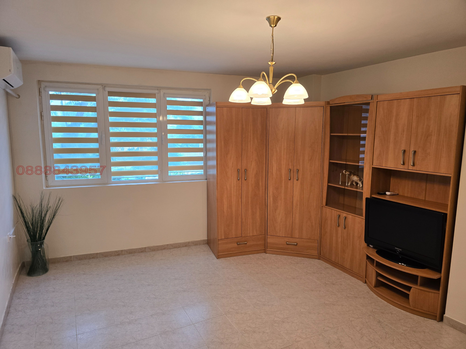 2. Дневна/Спалня : разполага с диван, който се разгъва и трансформира в легло с ширина 140см, холна маса, компактна и функционална секция с гардероб, телевизор и климатик. В стаята има възможност да се добави допълнително легло, бюро или друга мебел отговаряща на личните нужди.