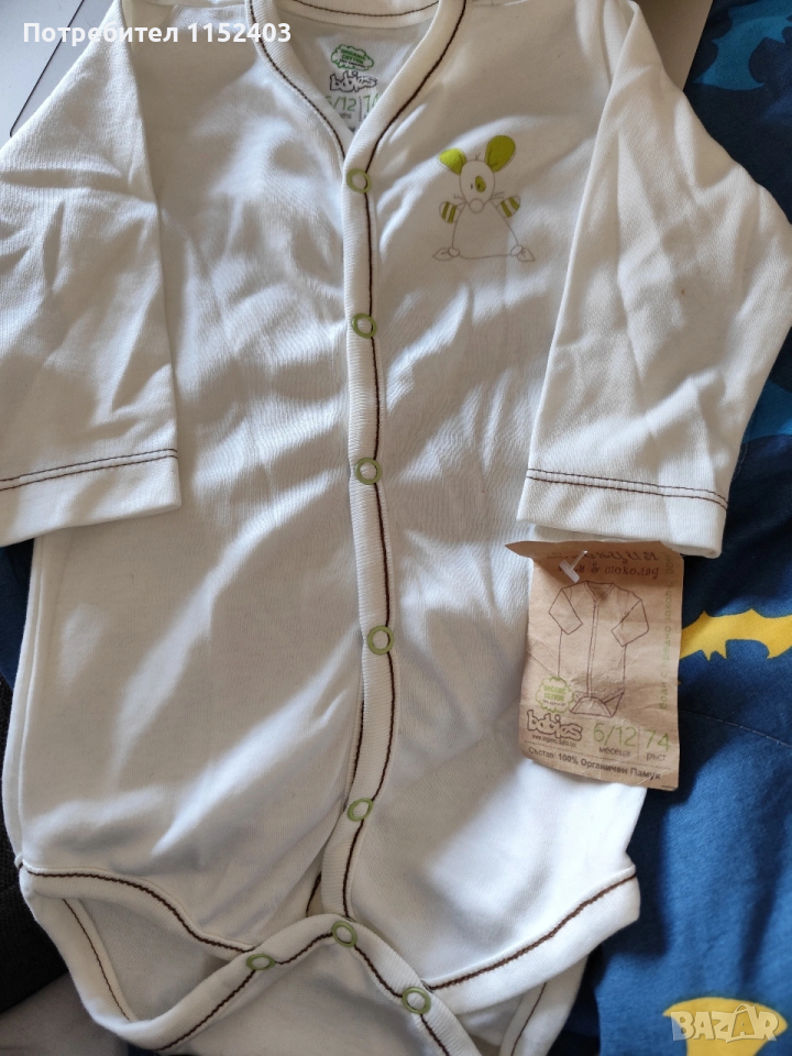 ново бебешко боди 6-12м от органичен памук → Обява 54286755