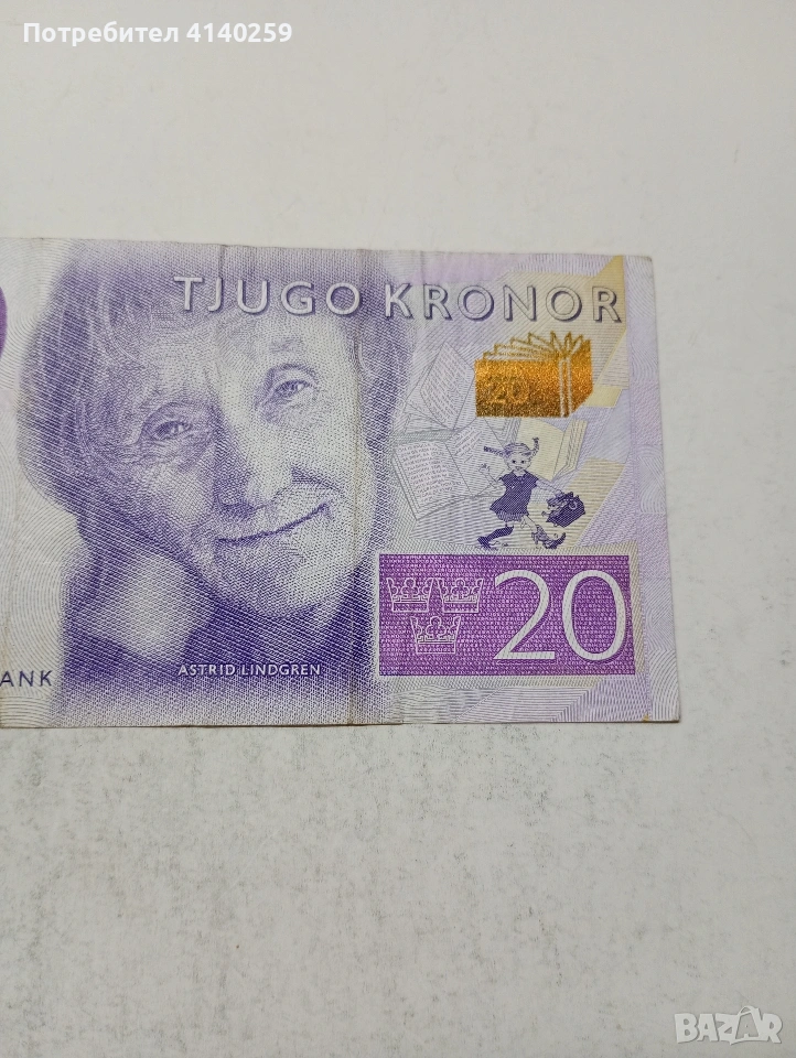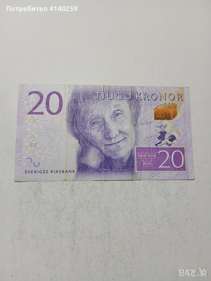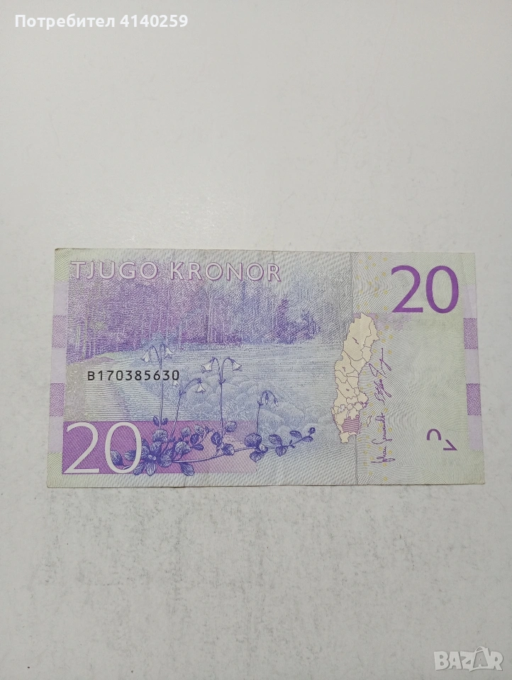 ШВЕЦИЯ БАНКНОТА 20 КРОНИ 2014-2016 Г СЪСТОЯНИЕ ВИДИМО ПОЛУЧАВАТЕ СНИМАНАТА БАНКНОТА РАЗГЛЕДАЙТЕ ДРУГИТЕ МИ ОБЯВИ ДА КОМБИНИРАТЕ ДОСТАВКА ЕКОНТ ЗА ВАРНА ЛИЧНО