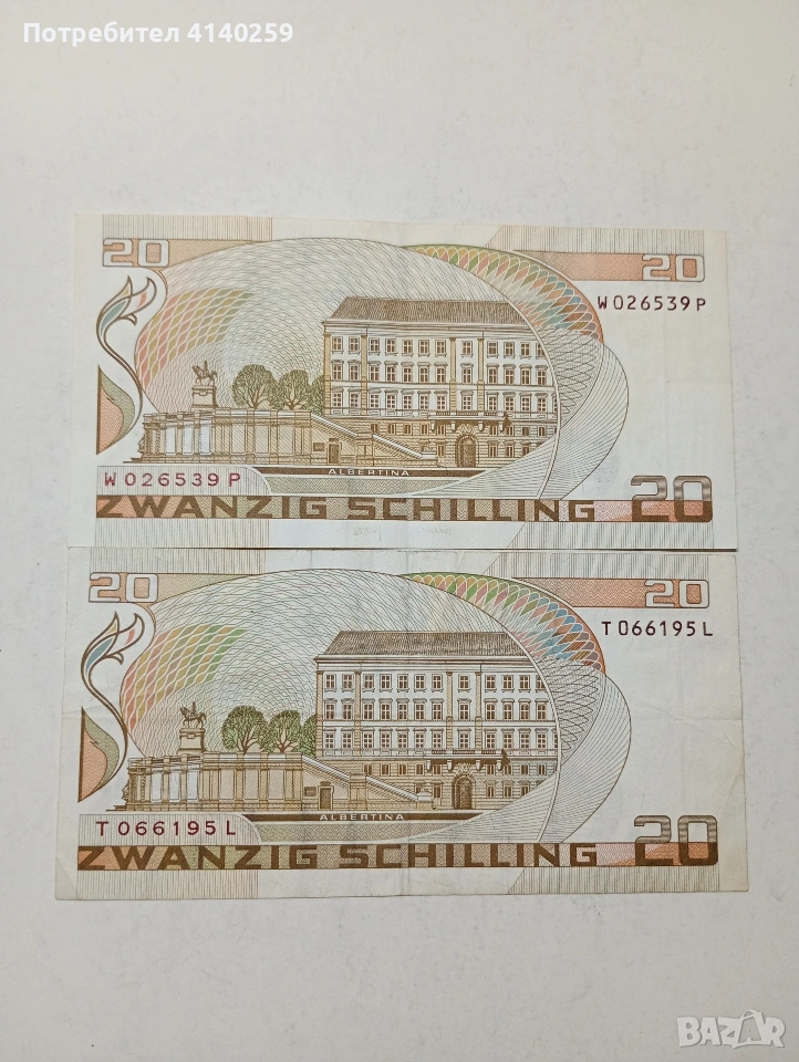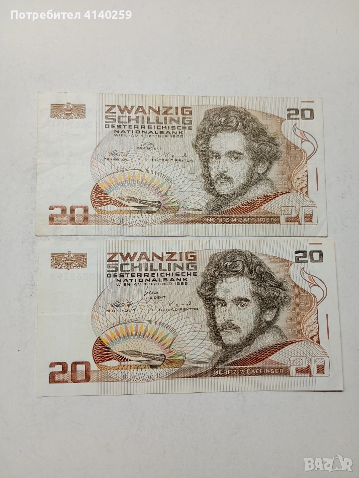 АВСТРИЯ БАНКНОТА 20 ШИЛИНГА 1986 Г СЪСТОЯНИЕ ВИДИМО ЦЕНА ЗА 2 БРОЯ ПОЛУЧАВАТЕ СНИМАНИТЕ БАНКНОТИ РАЗГЛЕДАЙТЕ ДРУГИТЕ МИ ОБЯВИ ДА КОМБИНИРАТЕ ДОСТАВКА ЕКОНТ ЗА ВАРНА ЛИЧНО