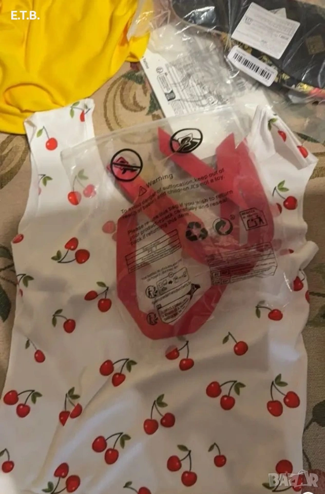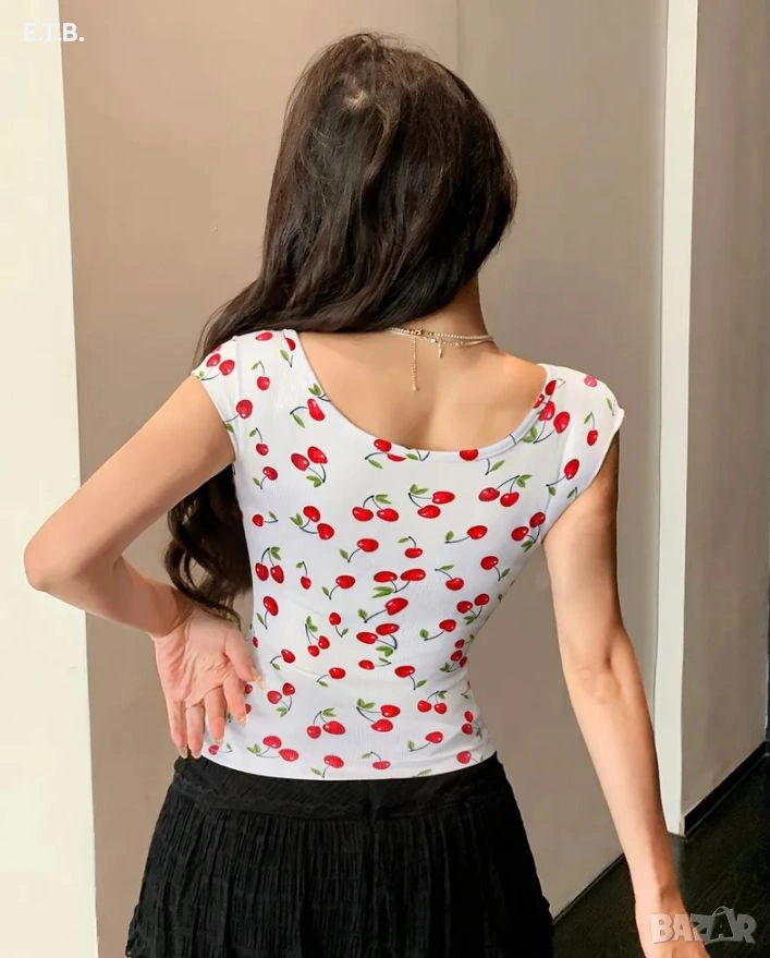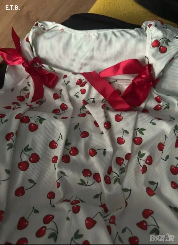 ХЛ РАЗМЕР свеж дамски топ с червени панделки. Изключително красив продукт! Ярки цветове! Гръдна 100 - 110 см. Дължина - 60 см. Нов във фабрична опаковка.