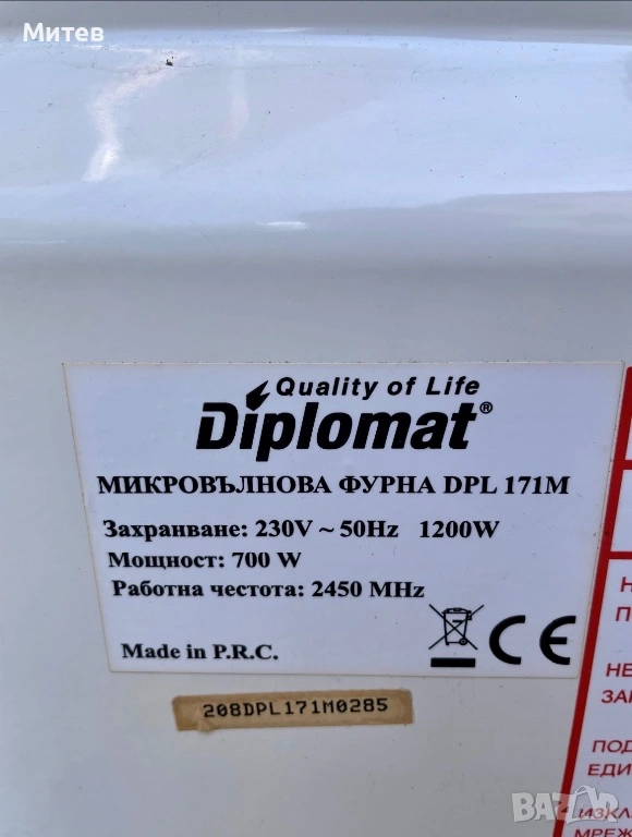 Микровълнова Diplomat DPL171M → Обява 54287036