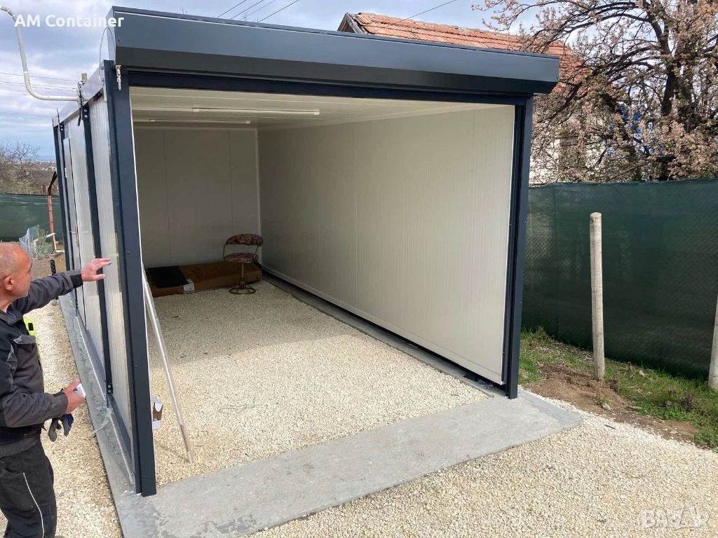 Гаражният контейнер е сигурно и подредено решение за автомобил, мотор, инструменти и техника, когато искате защитено пространство на двор или терен. Може да се изпълни с широк отвор и удобен достъп, както и с осветление и вентилация според предназначението. Често се използва и като работилница или база за оборудване – практично, здраво и лесно за позициониране.