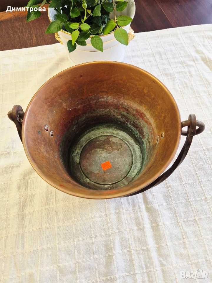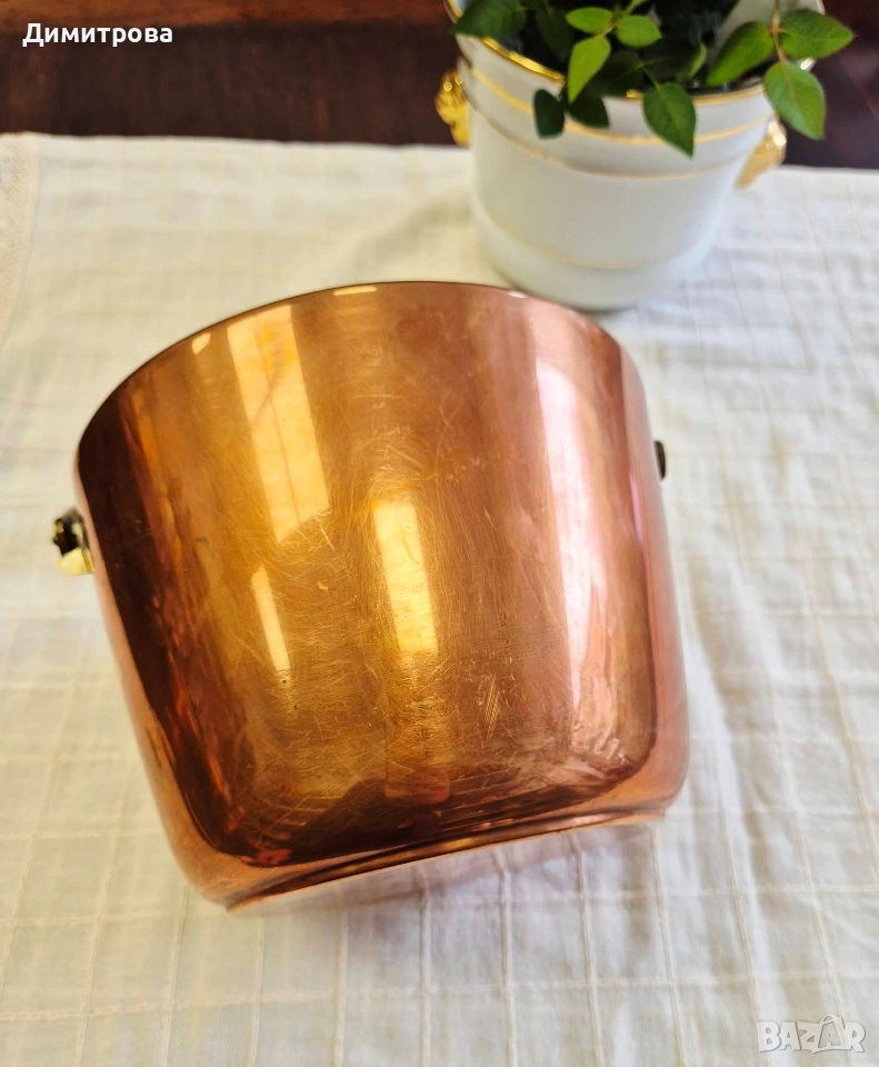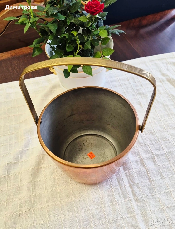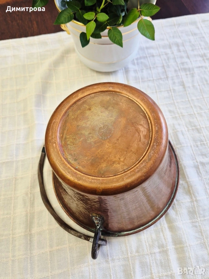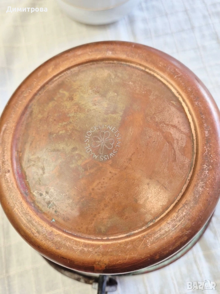 🍾 1. Диаметър 18,5см., h 14,5см. с месингова дръжка, с маркировка.