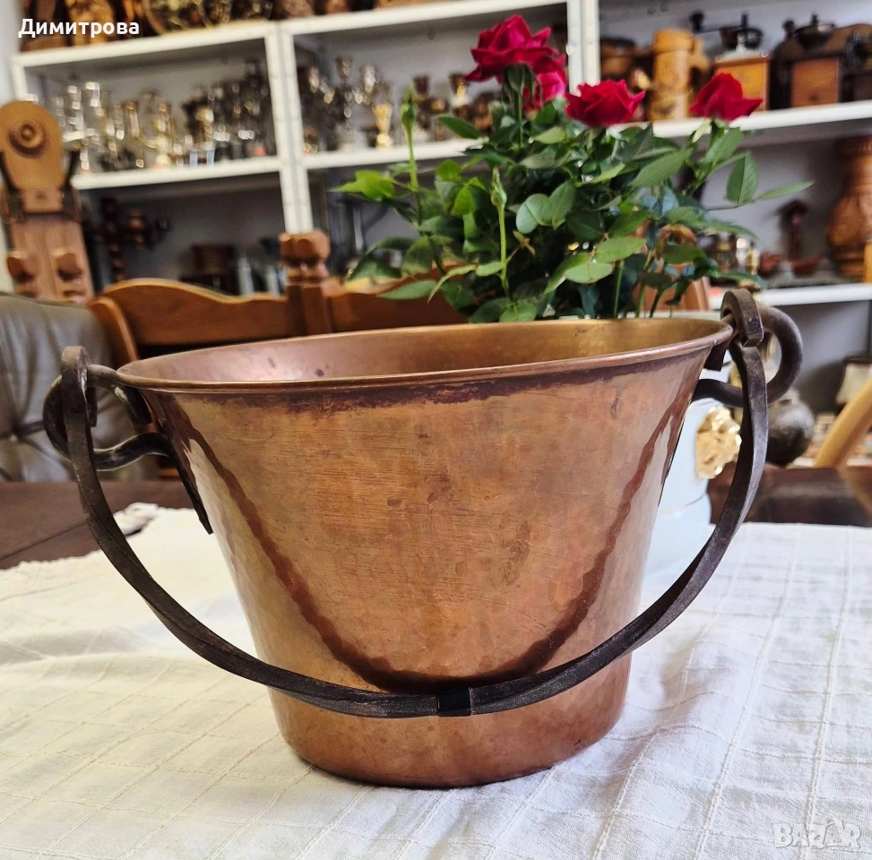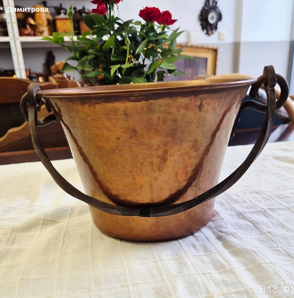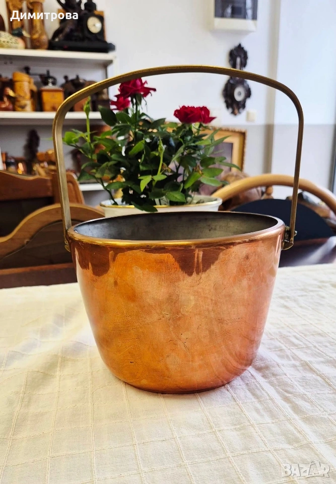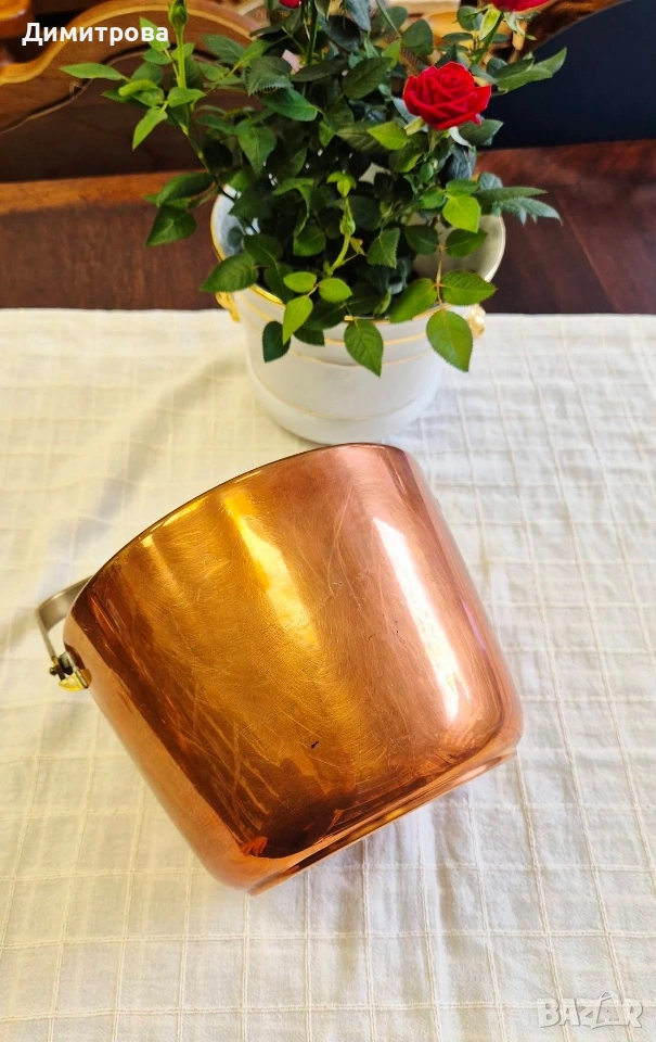 🍾 1. Диаметър 18,5см., h 14,5см. с месингова дръжка, с маркировка.