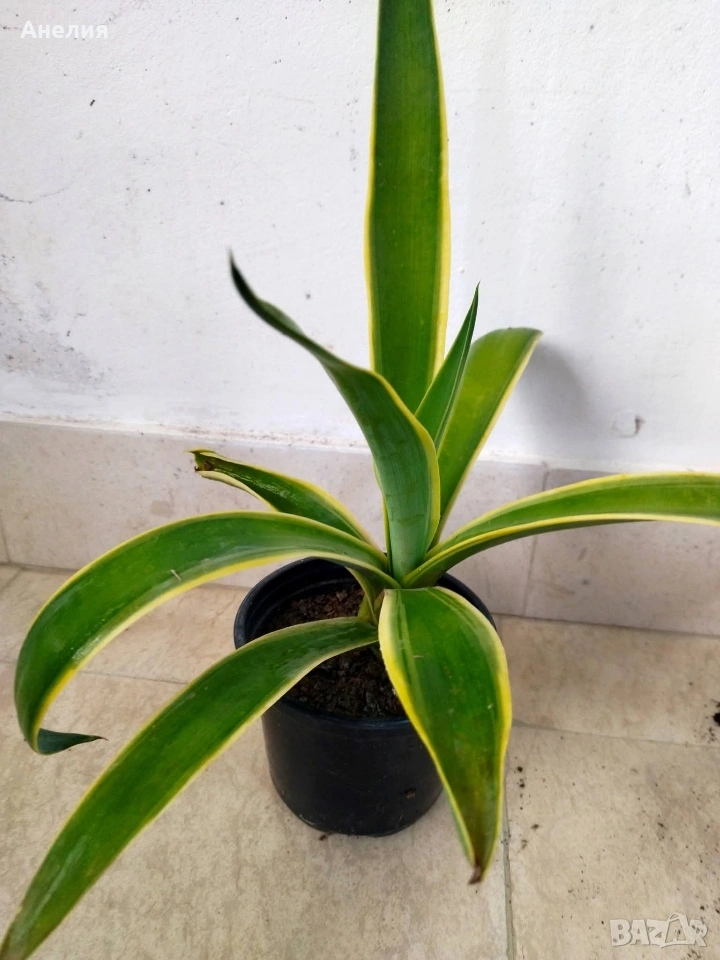Агаве вариегата/зелени листа със жълта ивица.