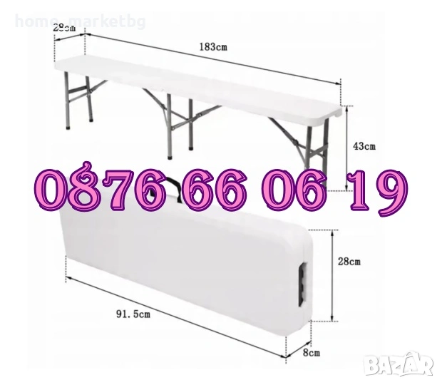 Сгъваема пейка за кетъринг 180 cм за 4 човека