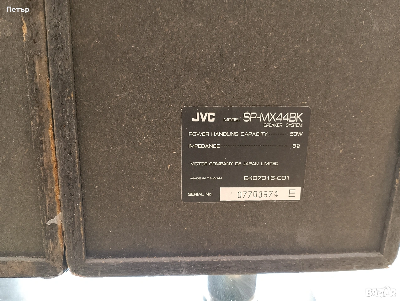 Продавам перфектно работещи тонколони JVC model SP-MX44BK.Едната задна щипка(червената) на едната тонколона е счупена,но при осигуряване на контакт с проводника с кабела с допълнителна щипка работи перфектно.Показано е на последната снимка.Разбира се и допълнителната щипка е включена в комплекта.Колоните са двулентови,50W,импеданс 8 ома.Размери ширина 17 см,височина 34 см,дълбочина 24 см.Сега на промоция-20 евро чифта до 01.05.