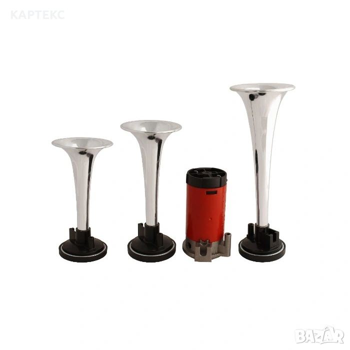 Модел: 6003 Тромба с компресор тройна никел . Работно напрежение: 12V Тромбата може да се монтира на автобуси, тирове, камиони и др. Свързва се към компресора на превозното средство. Управлението на тромбата включена / изключена става чрез бутона към който се свързват кабелите на компресора. Сила на звука: 430 дц.