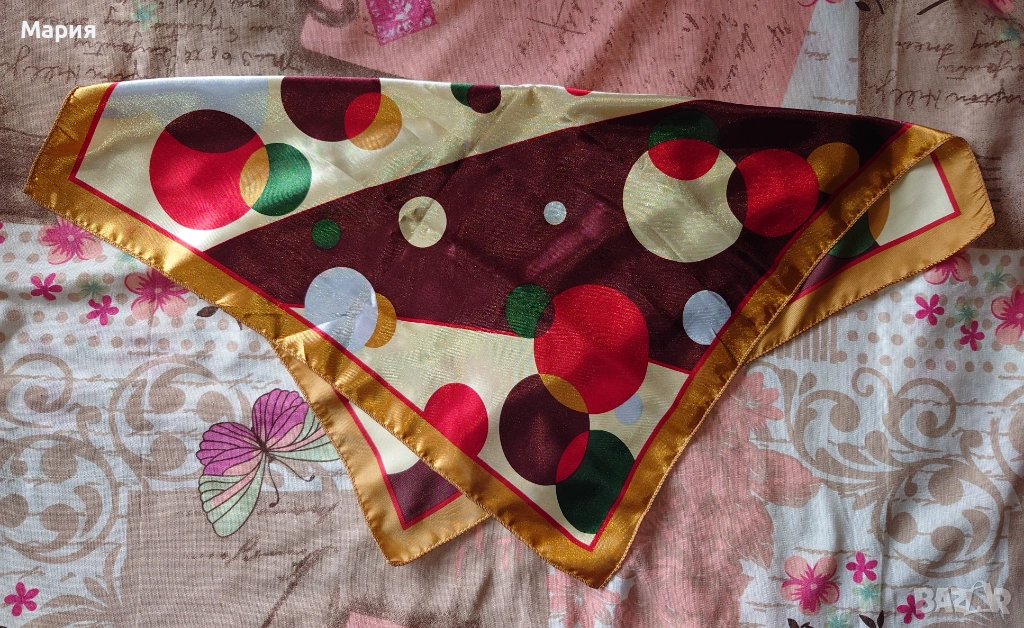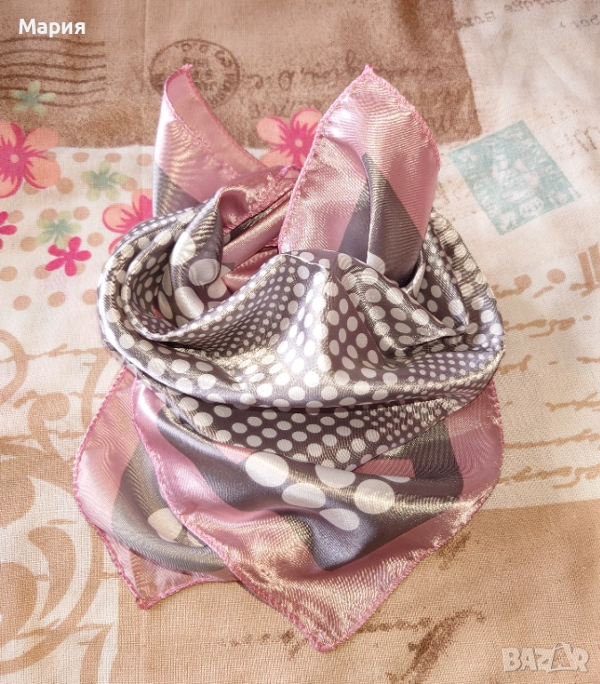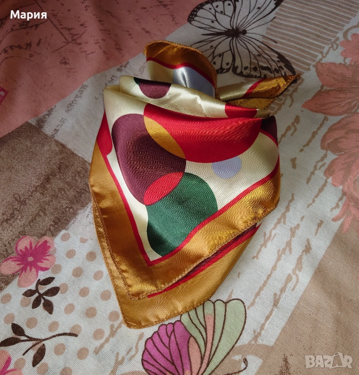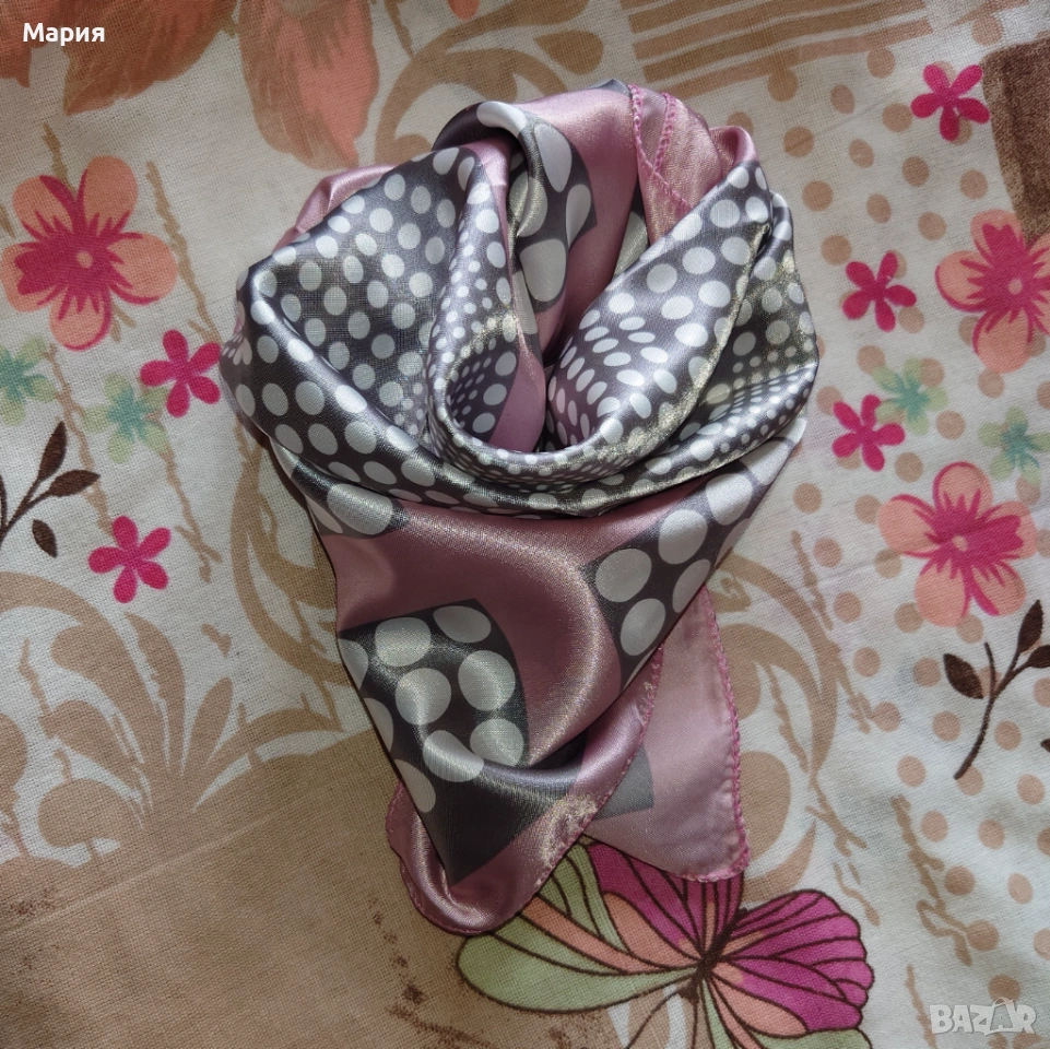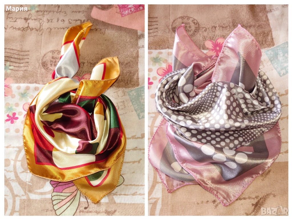 Малки и цветни, квадратни шалове тип фишу от фина и сатенирана материя. Цената е за брой!