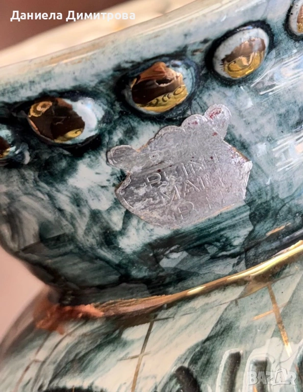 Комбинация от крайречен пейзаж и златна орнаментика с тюркоазено-зелена глазура.