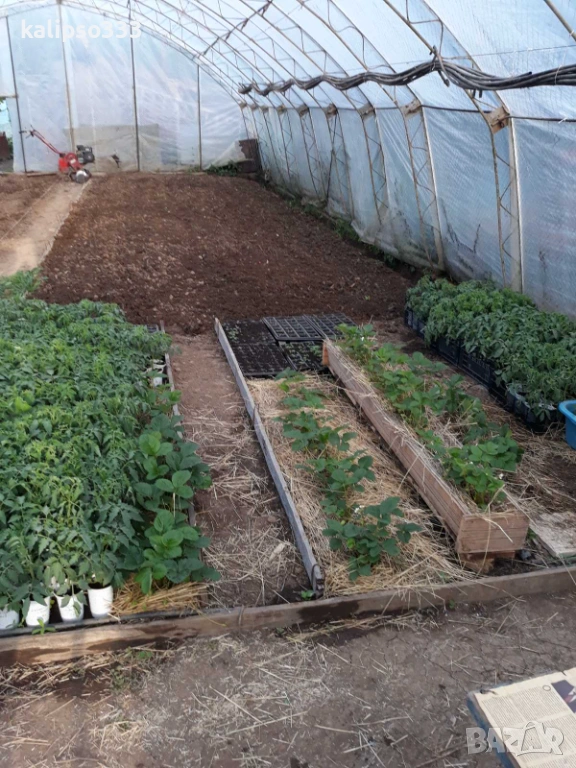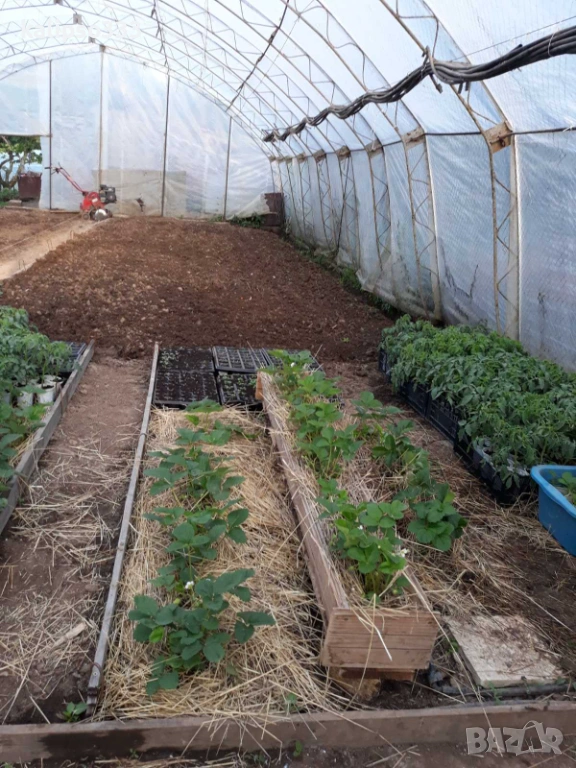 Оранжерия дължина 15 метра, широчина 8 метра, височина 3.5 метра. Цена 130 евро за една ферма. Общо са 14 ферми по 130 евро 1820евро за цялата. Не е разглобена и полиетилена е скъсан.