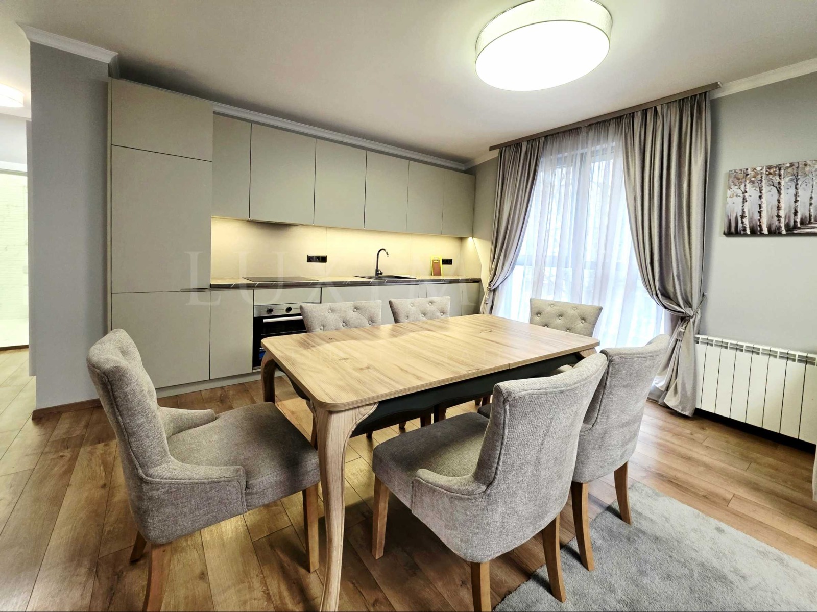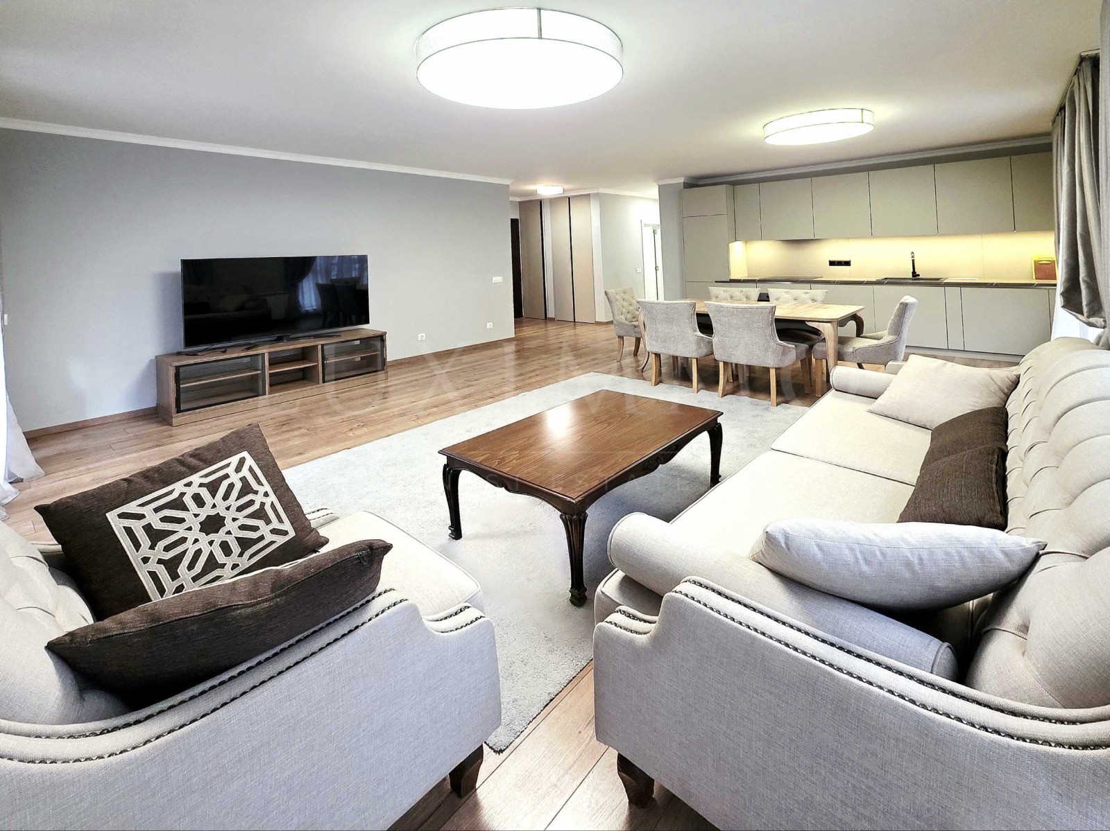 голяма дневна с трапезария и балкон и напълно оборудвана кухня;
