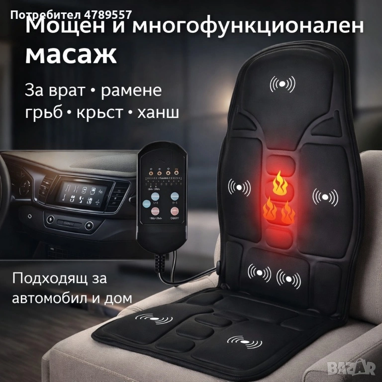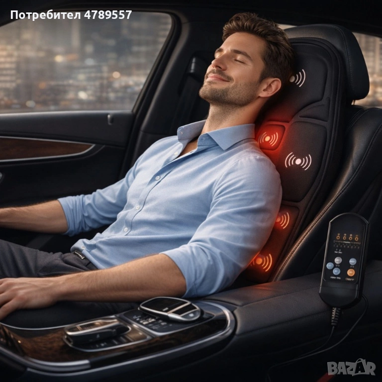 Седалката разполага със 7 мощни вибрационни мотора, които обхващат врата, гърба, кръста, ханша и бедрата. Вграденото подгряване в 3 зони действа като топъл компрес, който отпуска схванатите мускули и подпомага възстановяването. Чрез удобното дистанционно управление избираш интензитет, режим и таймер според нуждите си – без излишни настройки и сложни менюта.Захранване: 110–230V (домашна мрежа) Изход: DC 12V Честота: 50–60 Hz Масажни мотори: 7 броя Функции: вибрационен масаж, подгряване, таймер, регулиране на интензитета Употреба: дом / офис / автомобил