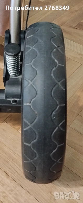 Предни единични гуми - 9“, въртящи се на 360°. Задни колела - 12 “;