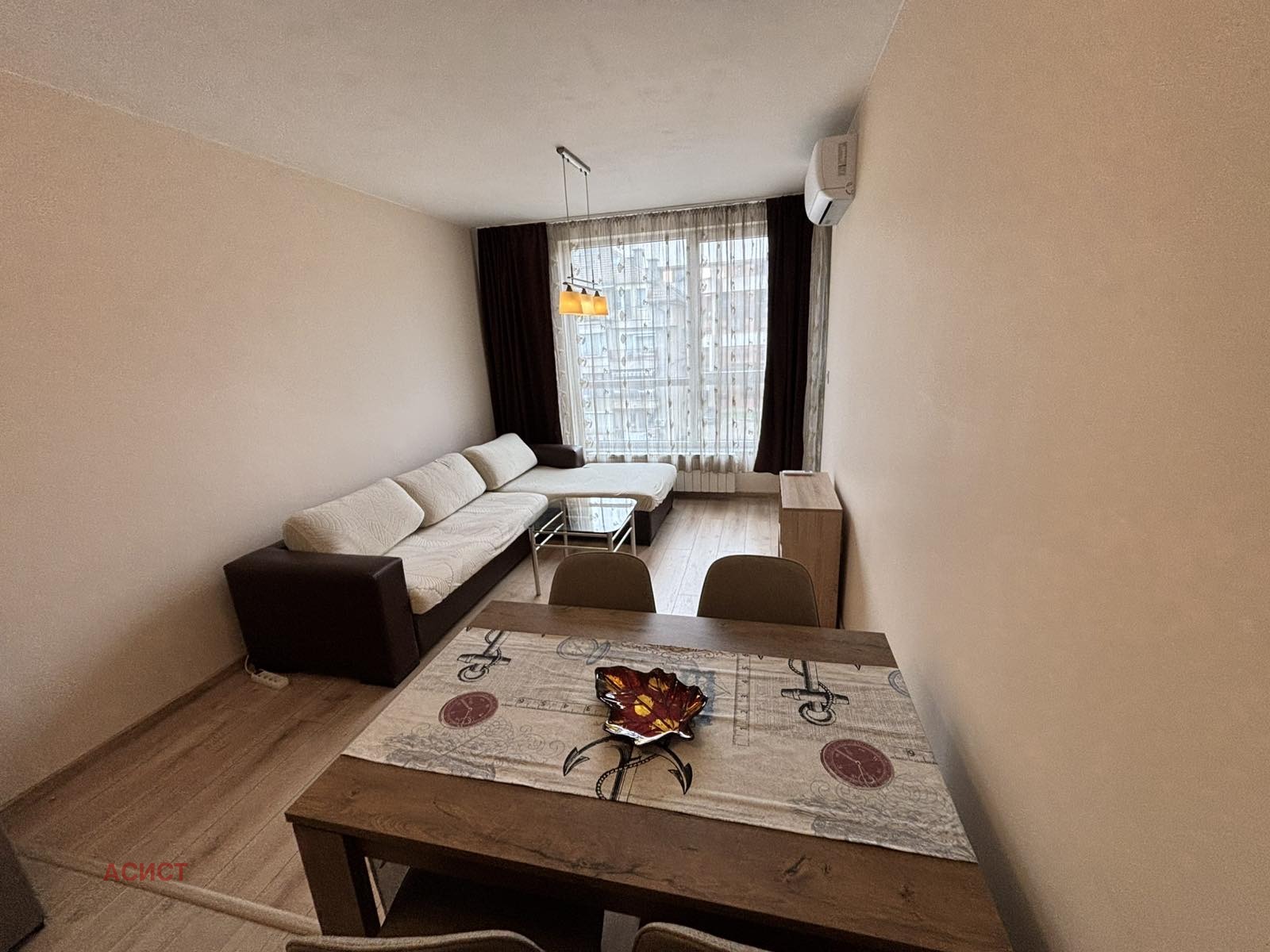 Жилището е ситуирано в добре поддържана нова и модерна тухлена сграда. Отоплението е на ТЕЦ, налични са и климатици в двете стаи.