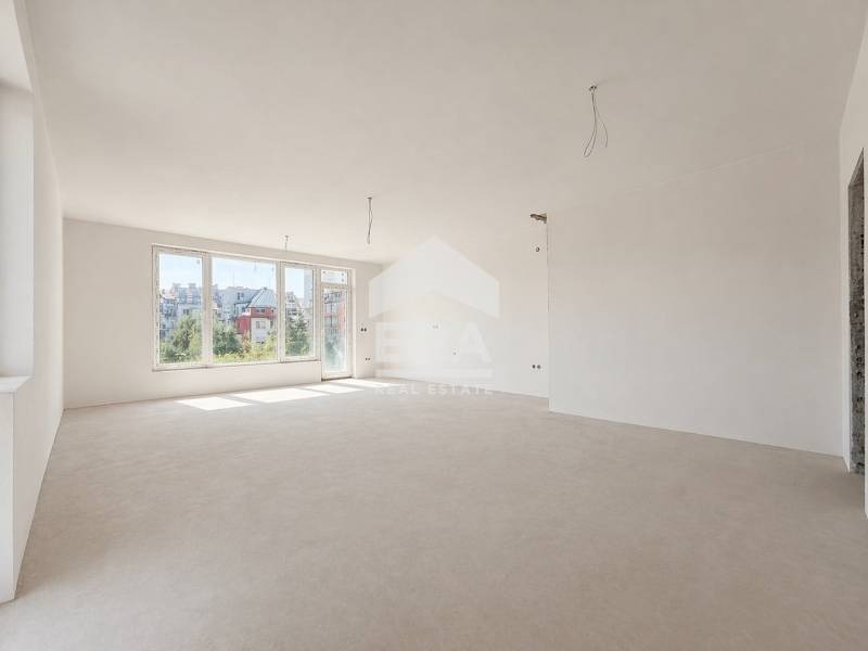 Разпределение: Входно антре и коридор, всекидневна с кухненски бокс и трапезария 33.45 кв. м., 3 самостоятелни стаи, 2 бани с тоалетна, мокро помещение и 4 балкона.