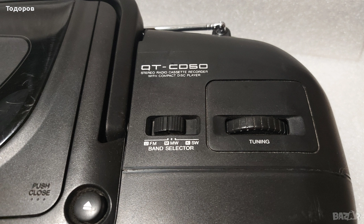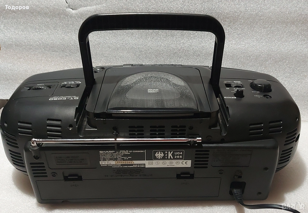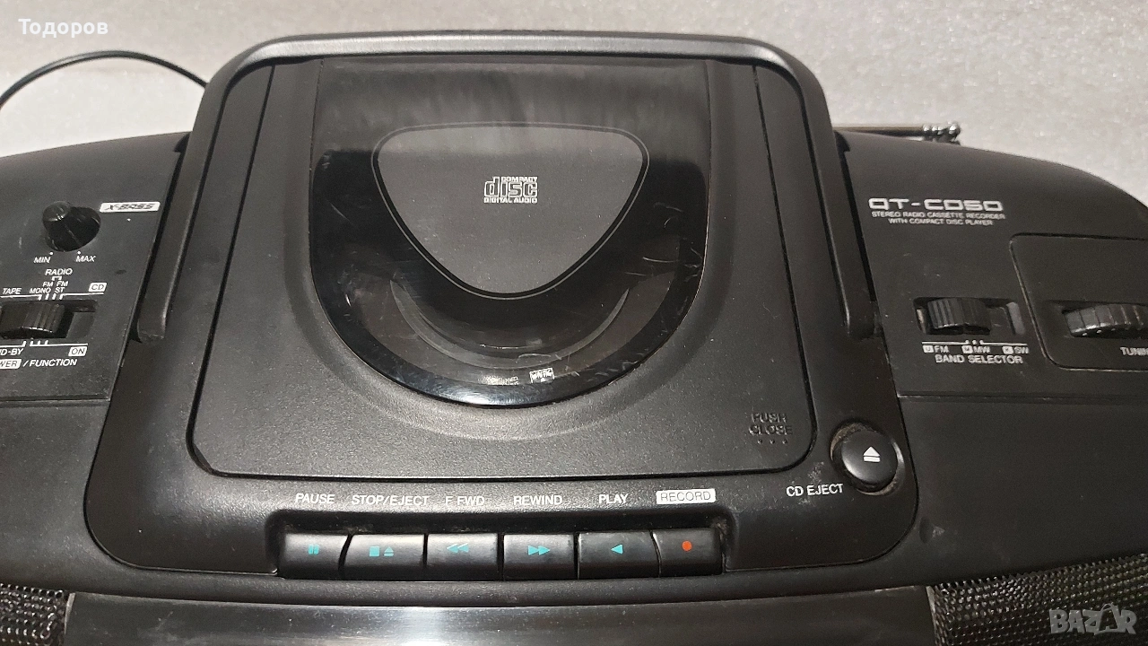 Стерео, радиокасетофон със CD плейър Sharp QT-50CDH в отлично състояние, външно и техническо. Ако ви трябва нещо евтино,но с добър звук,това е вашата машинка ! Всичко му работи коректно,CD,FM радио и касета.