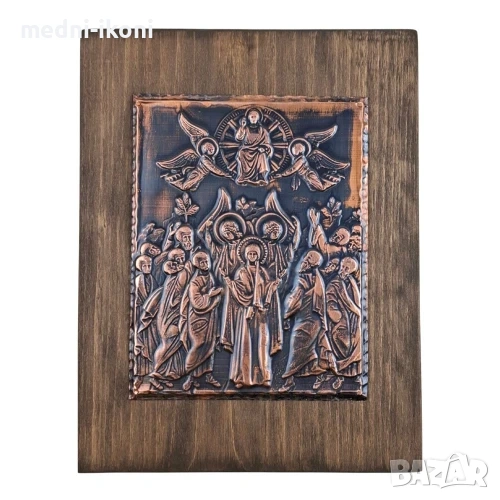 "орех". Тази икона е художествена репродукция на средновековна православна икона. На нея е изобразено едно от най-важните събития за християните - Възнесение Христово или Възнесение Господне. Според поверието, след смъртта и възкресението си, Исус Христос се среща с учениците си, за да им разказва за Божието царство. На 40-тия ден, придружен от тях и Дева Мария, той се изкачва на Елеонския хълм до Йерусалим и от там, пред очите на всички, се възкачва на небето. Това негово действие се счита и за край на Христовия път на Земята. Този ден е познат още и като Спасовден (Ден на Спасителя), защото с Христовото Възнесение се извършва актът на човешкото спасение. Спасовден празнуваме 40 дни след Възкресение Христово. Счита се за специален празник на хлебари, сладкари, хотелиери и шофьори. Тази невероятна икона е подходящ подарък за рожден ден, имен ден, бизнес партньори и за всякакъв друг вид повод или празник. Помага при трудности, пази от лоши мисли, загуби и зли сили. Носи здраве, смирение и благоденствие на цялото семейство. Всяка една икона е уникат, притежава сертификат за автентичност, не е културна ценност и може да бъде изнасяна извън страната.