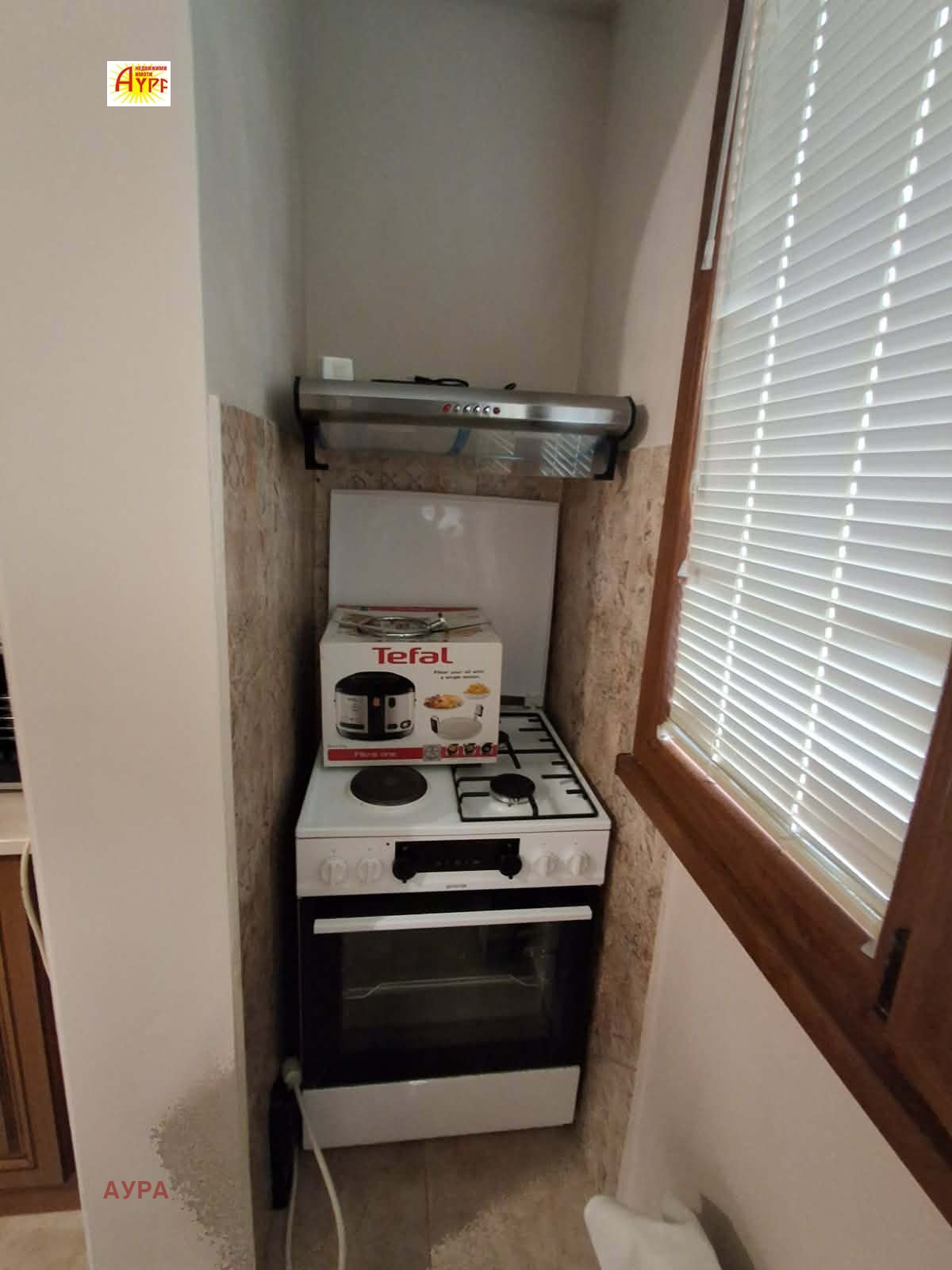 Кухня - стени латекс, теракот като подова настилка, усвоена тераса;