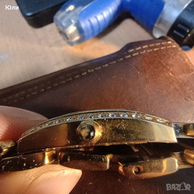 Часовникът е с диаманти, 3 от които липсват, за това и цената е толкова ниска.Изключително стилен и красив.