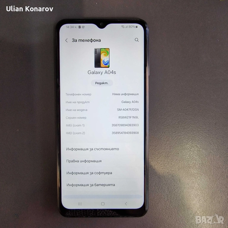 📱 Продавам Samsung A04s (3GB RAM / 32GB памет)