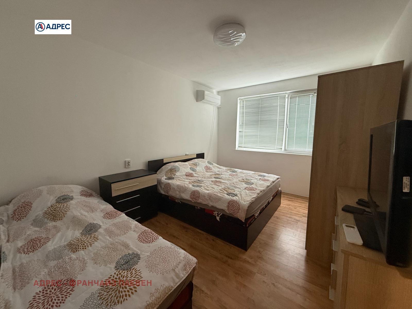 Апартаментът е обзаведен с необходимите мебели и електроуреди. Поддържан е в добро състояние, с чисти помещения и практично разпределение.