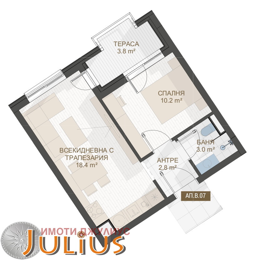 Джулиус имоти - твоят елегантен двустаен апартамент с 1 спалня и тераса в Capital Residence те чака! 🏙️❤️