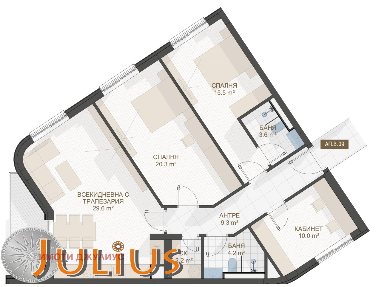 Джулиус имоти - твоят елегантен тристаен апартамент с 2 спални, хол и хоум офис в Capital Residence те чака! 🏙️❤️