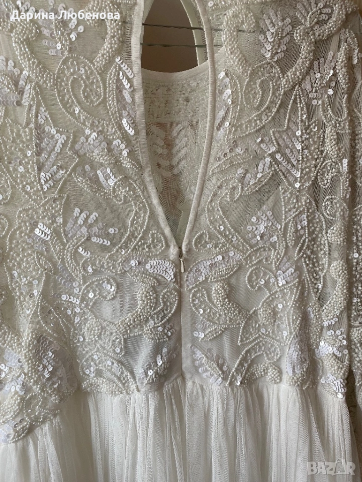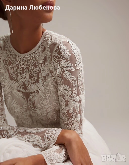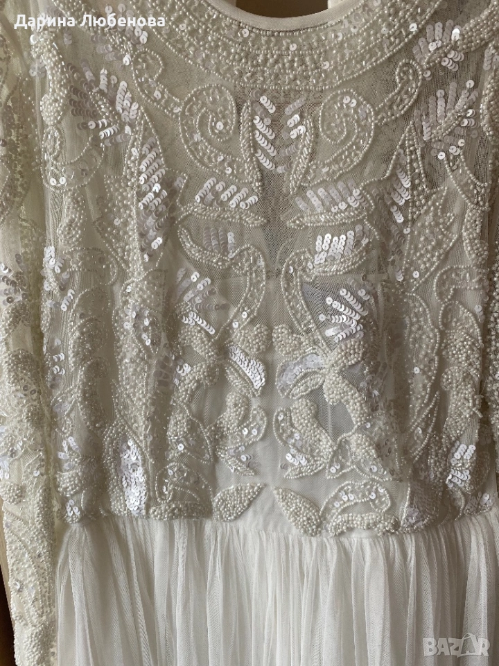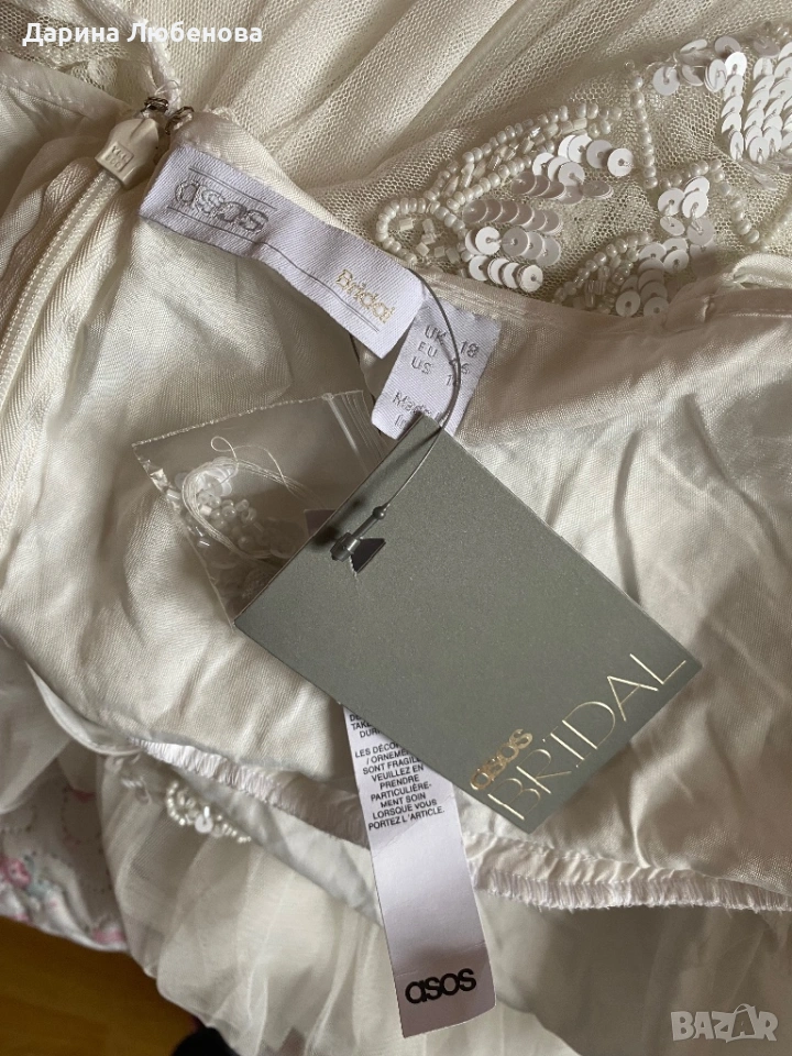 Чисто нова булчинска рокля от Bridal колекцията на ASOS. Моделът е с пайети и мъниста. Размер 46. По-подробни мерки, измерени отпред: