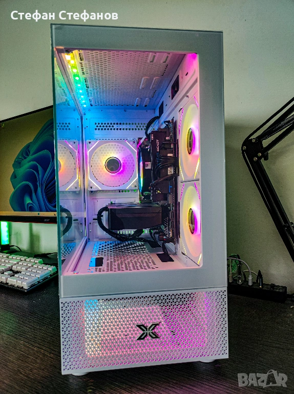 → Компютърна кутия с темперно стъкло и ARGB вентилатори, които светят с синхрон и се управляват от програмата на Asus.