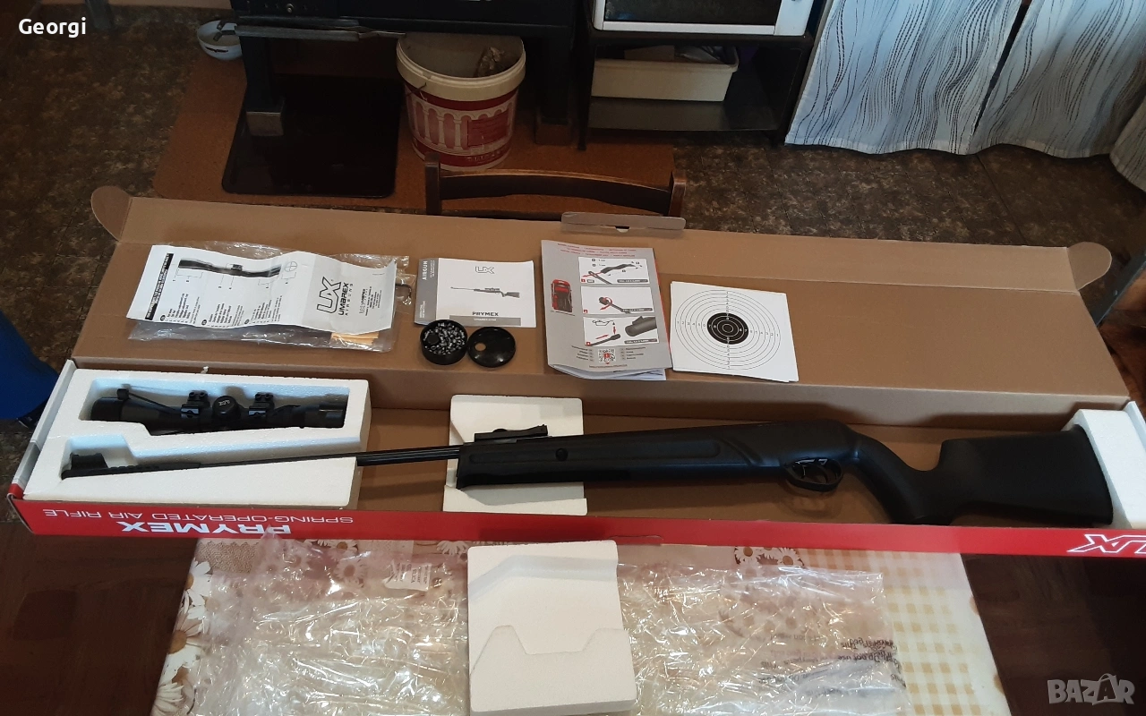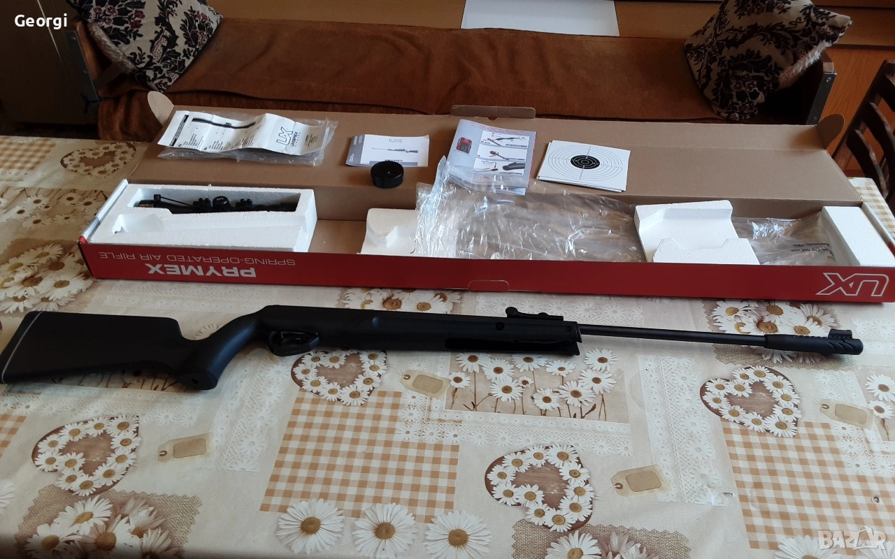 Пушките са чисто нови Германски.най нов модел Umarex UX Prymex Set.2026г.Чупеща. Заводски комплект със оригинална Оптика 4×32,кутийка съчми и 10бр. мишени.Това всичко влиза в цената. Кал22.5.5мм. Не се обявяват в КОС за което имат сертификат.Много красиви леки и удобни.На съобщения не отговарям само по телефона.