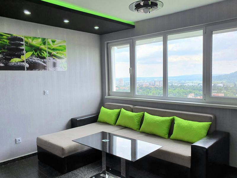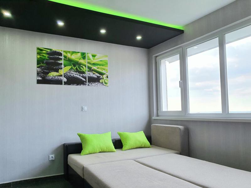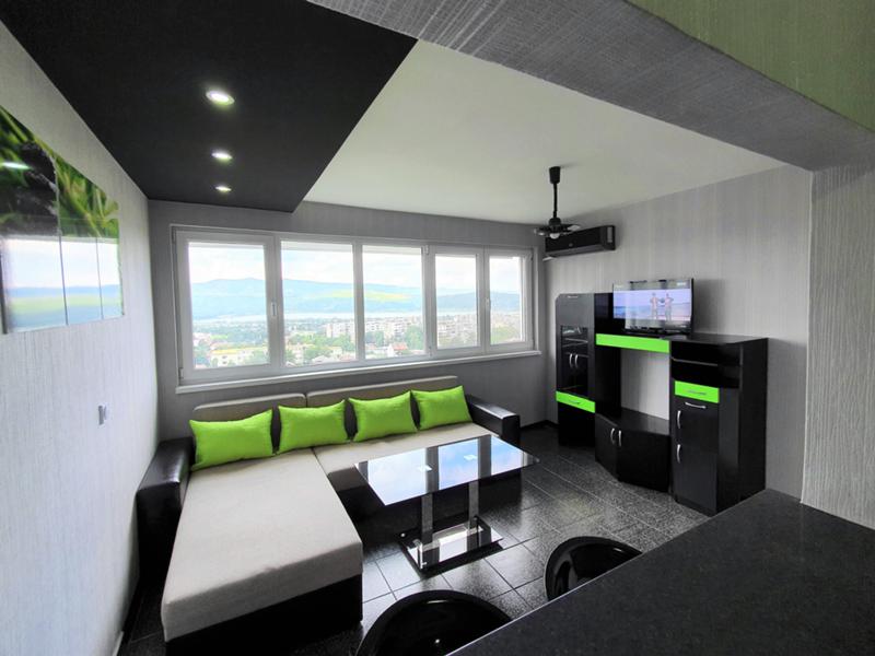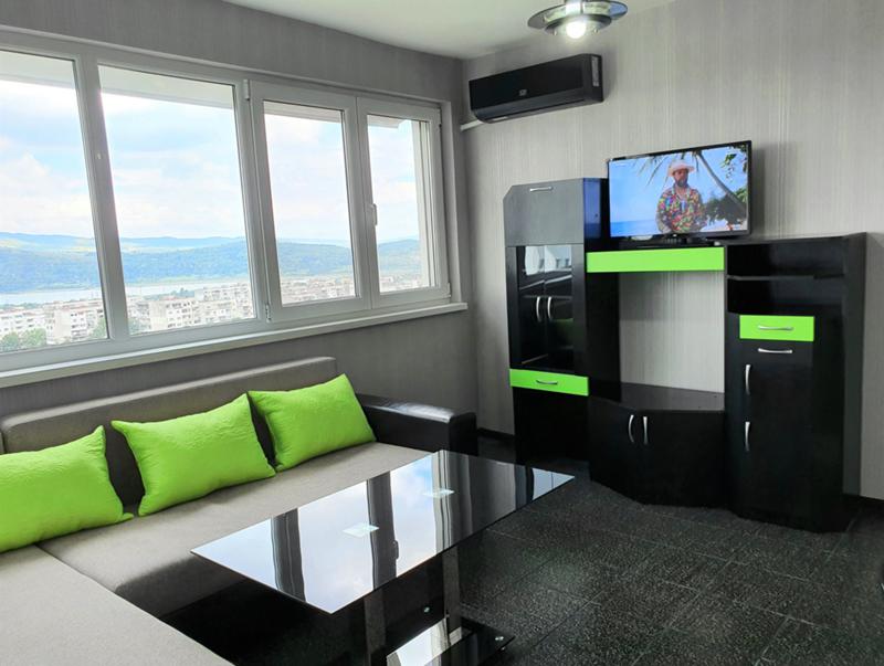 Апартамента се намира в района на болницата в 18 етажните блокове. Напълно обзаведен е, с всичко необходимо за живеене-мебели, ел уреди, печка, абсорбатор, пералня, хладилник. Отоплението е с КЛИМАТИК от най ново поколение - супер икономичен А++ с интернет и WI-FI . Може да се пуска и управлява от телефона ви от всяко място в света. Изцяло и само лед осветление в всички стаи - супер икономично..Окачени тавани с скрито осветление. Командва се с дистанционно. Сменя цветовете по ваш избор и намалява и увеличава светлината. Лед телевизор с музикален плеар с флашка. Заради изолациите, дограмите и икономичния климатик, сметките и разходите за отопление са МНОГО НИСКИ!! СПЕСТЯВАТЕ МИНИМУМ 100 ЛЕВА НА МЕСЕЦ ОТ СМЕТКИТЕ ЗА ОТОПЛЕНИЕ!!! КЛИМАТИКА Е 0, 6 KW И Е МНОГО ПО ЕВТИНО ОТ ЦЕНТРАЛНО ПАРНО ИЛИ ОТОПЛЕНИЕ С КАКВИТО И ДА Е ЕЛ. УРЕДИ! Топъл и икономичен апартамент с прекрасен изглед от панорамните стъкла по цялата дължина на хола! Постоянно работещ асансьор! Стандартни условия за наемане-Наем, депозит и договор!..