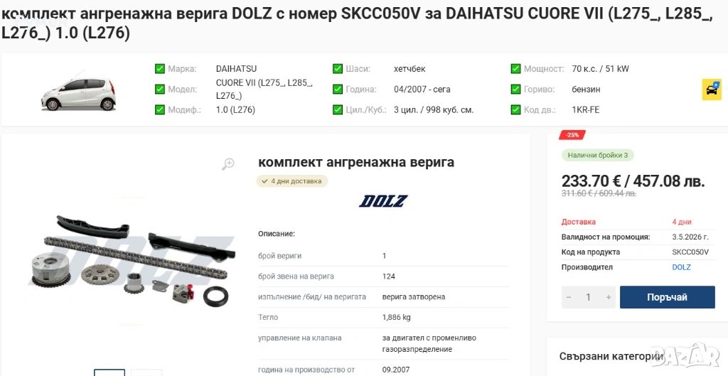 Комплект ангренажна верига DOLZ SKCC050V