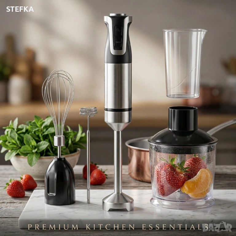 Мощен ръчен блендер 1800W с 20 скорости и турбо функция – комплект 5 в 1 с чопър, бъркалка и пенообразувател
