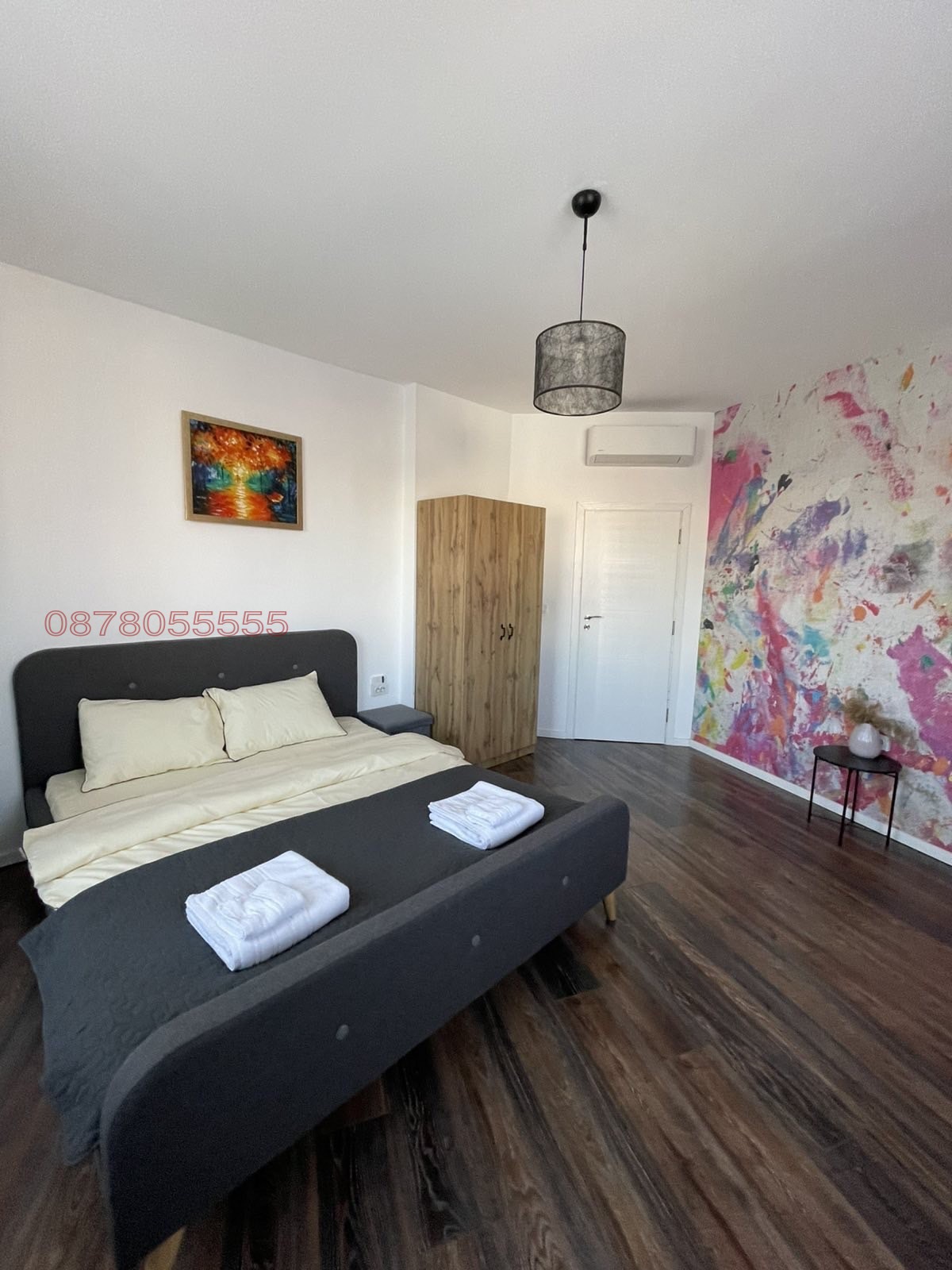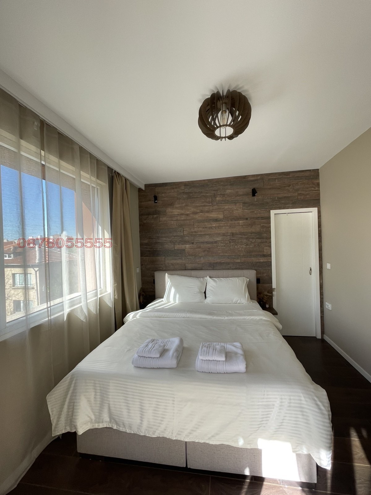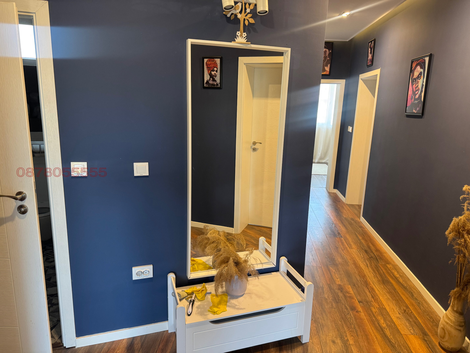 Сънчев,много просторен и тих апартамент.След основен ремонт.Апартамента включва 3 просторни спални с дрешник,коридор,кухня с трапезария,две тоалетни баня,две тераси с гледка към балкана.Има мазе и таванска стая и двор с маса и столове.Апартамента е напълно обурудван с нови електроуреди(вградени печка,плот и пароуловител,хладилник с фризер SIDE BY SIDE с диспенсер за студена вода и ледогенератот,пералня и сушилня с термопомпа).Климатизацията и отопленнието са със климатична система Toshiba в всички стай.Общите части на сградата и фасадата също след основен ремонт.До сграда винаги има места за паркиране.Района е тих и много комуникативен.Апартамента е сам на етажа