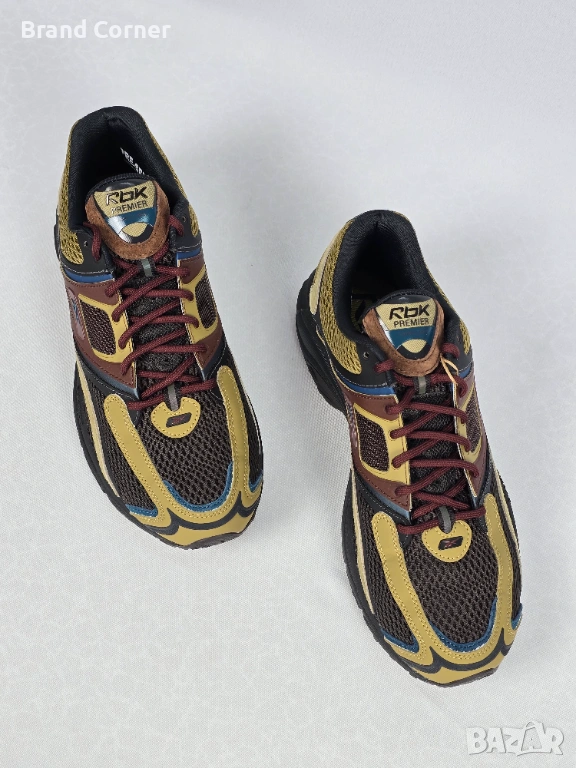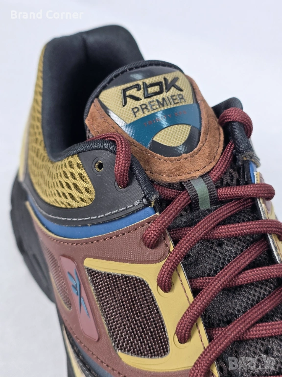 Продавам чисто нови, оригинални мъжки маратонки Reebok RBK Premier Trinity KFS. Моделът се отличава с изключително актуален ретро "Y2K" и "gorpcore" дизайн, съчетаващ стил, издръжливост и комфорт. Обувките са в уникална цветова комбинация от земни тонове – маслинено зелено, кафяво и черно, допълнени от акценти в синьо и ефектни връзки в цвят бордо.
