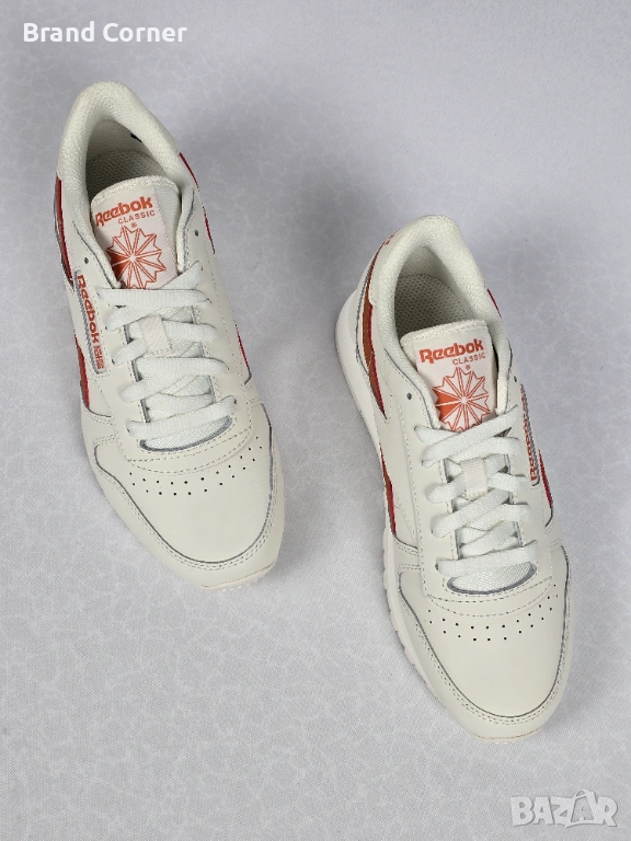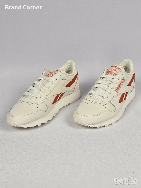 Продавам нови дамски обувки Reebok Classic в много свеж и стилен цвят – екрю/кремаво с оранжеви акценти. Моделът е изключително подходящ за ежедневно носене, разходки и комбиниране с спортно-елегантни и casual визии.