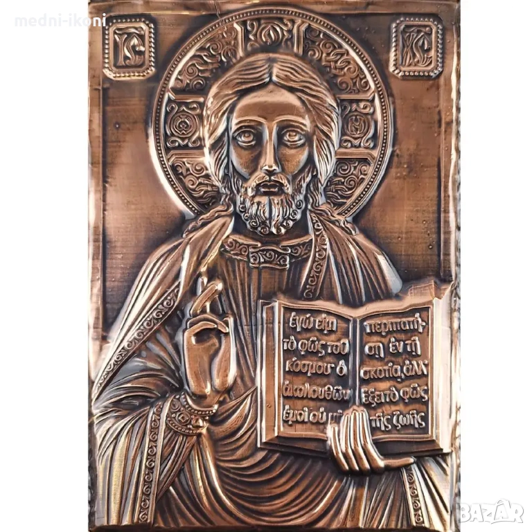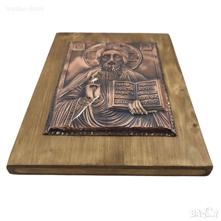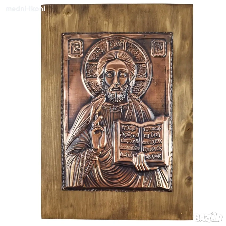 "орех". Тази голяма икона е художествена репродукция на средновековна православна икона. На нея е изобразен Иисус Христос Пантократор (Вседържител) от времето, когато вече проповядва. Този вид изобразяване на Христос е най-ранният и основен иконографичен негов образ. Подходящ подарък е за рожден ден, сватба, кръщене, нов дом и за всякакъв друг вид повод или празник. Христос Пантократор е пазител на семейството, покровител на всеки християнин, на децата и дома. Помага при всяка трудност или тежко решение.