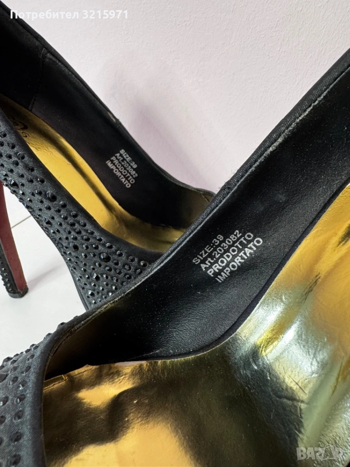 Обувки на ток в черен цвят с камъни на марката Di Vas. Номер 39. Използвани 2-3 пъти. Изпращат се в оригиналната им кутия