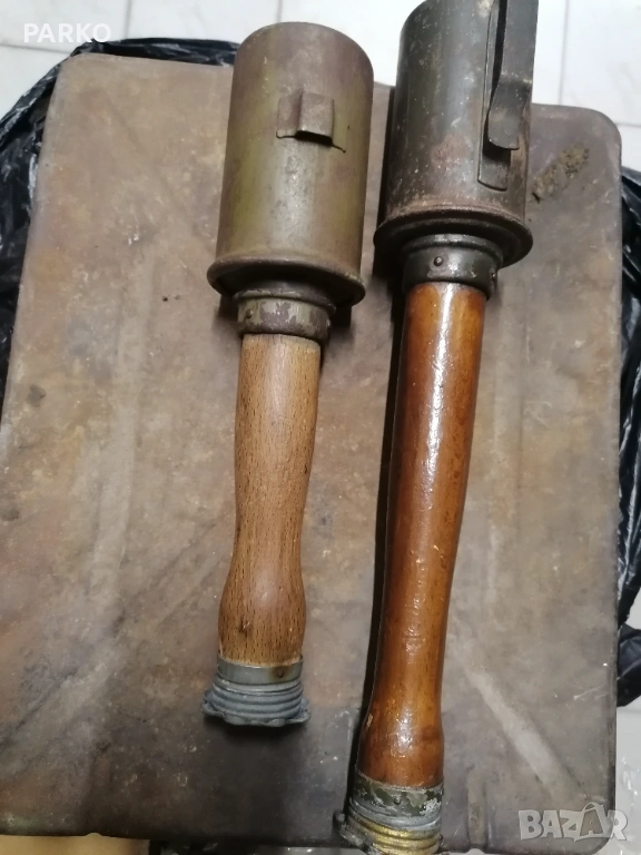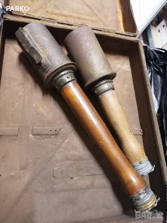 Две гранати обезопасени +сандък за гранати. Едната е M 1917 WW 1 german. Другата е БГ мисля. Цена за комплект 350 евро. Оръжеен магазин София бул Столетов 38 срещу централен затвор София